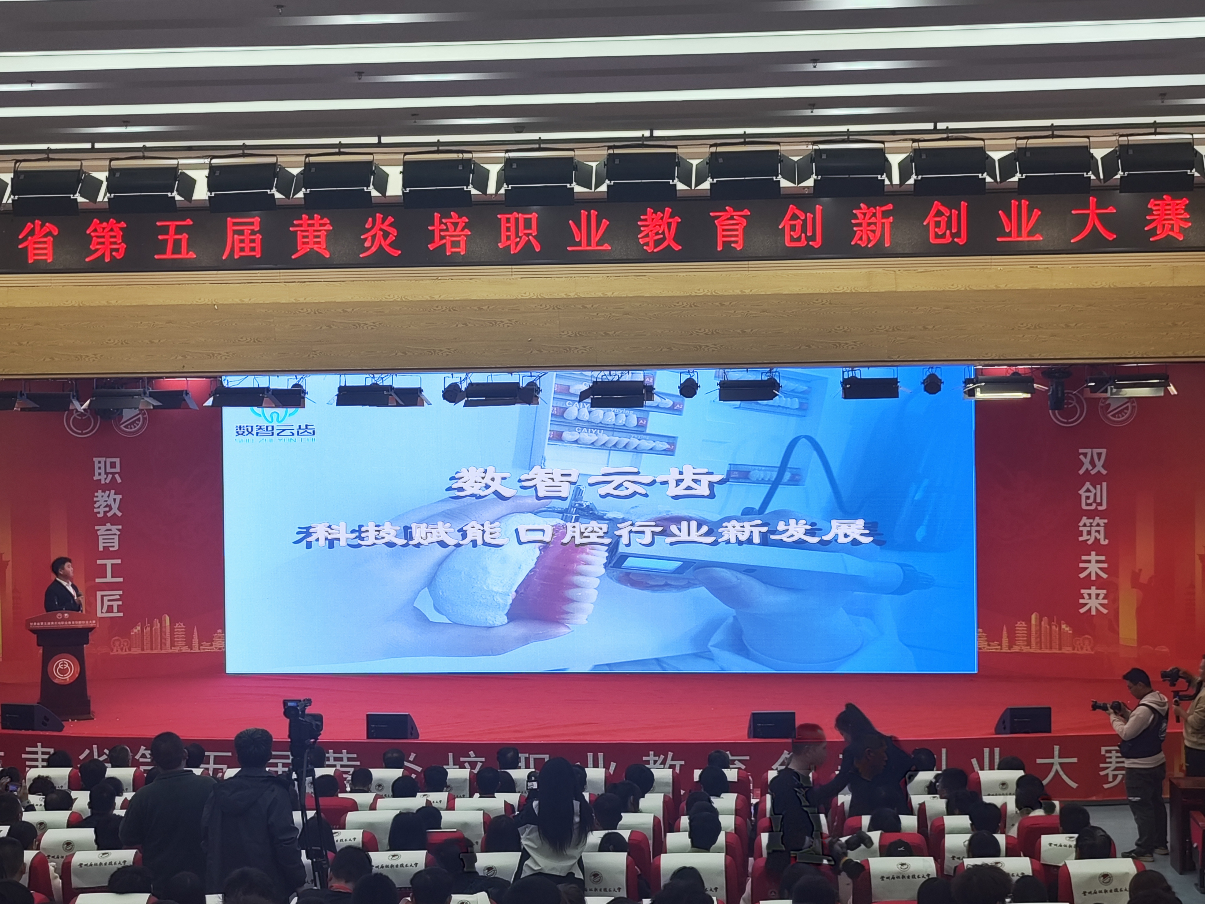 本屆大賽以“職教育工匠,雙創(chuàng)筑未來”為主題,設主題賽和專項賽,省內47所院校近300名選手參加決賽,經過激烈角逐,我校獲一等獎1項,三等獎4項,學校榮獲優(yōu)秀組織獎?!稊抵窃讫X--科技賦能口腔行業(yè)新發(fā)展》項目在頒獎晚會代表優(yōu)秀項目進行路演。