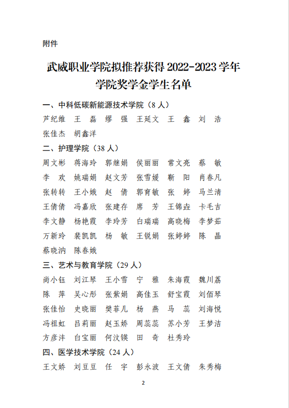 武威職業(yè)學(xué)院關(guān)于2022-2023學(xué)年學(xué)院獎(jiǎng)學(xué)金評選結(jié)果的公示
