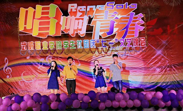 為紀念建黨95周年,6月22日晚,武威職業(yè)學院學生社團在學院禮堂舉辦了慶“七一”文藝晚會。學院副院長潘玉華,學生工作處、招生就業(yè)處、工會、院團委負責人和800多名師生一同觀看了演出。