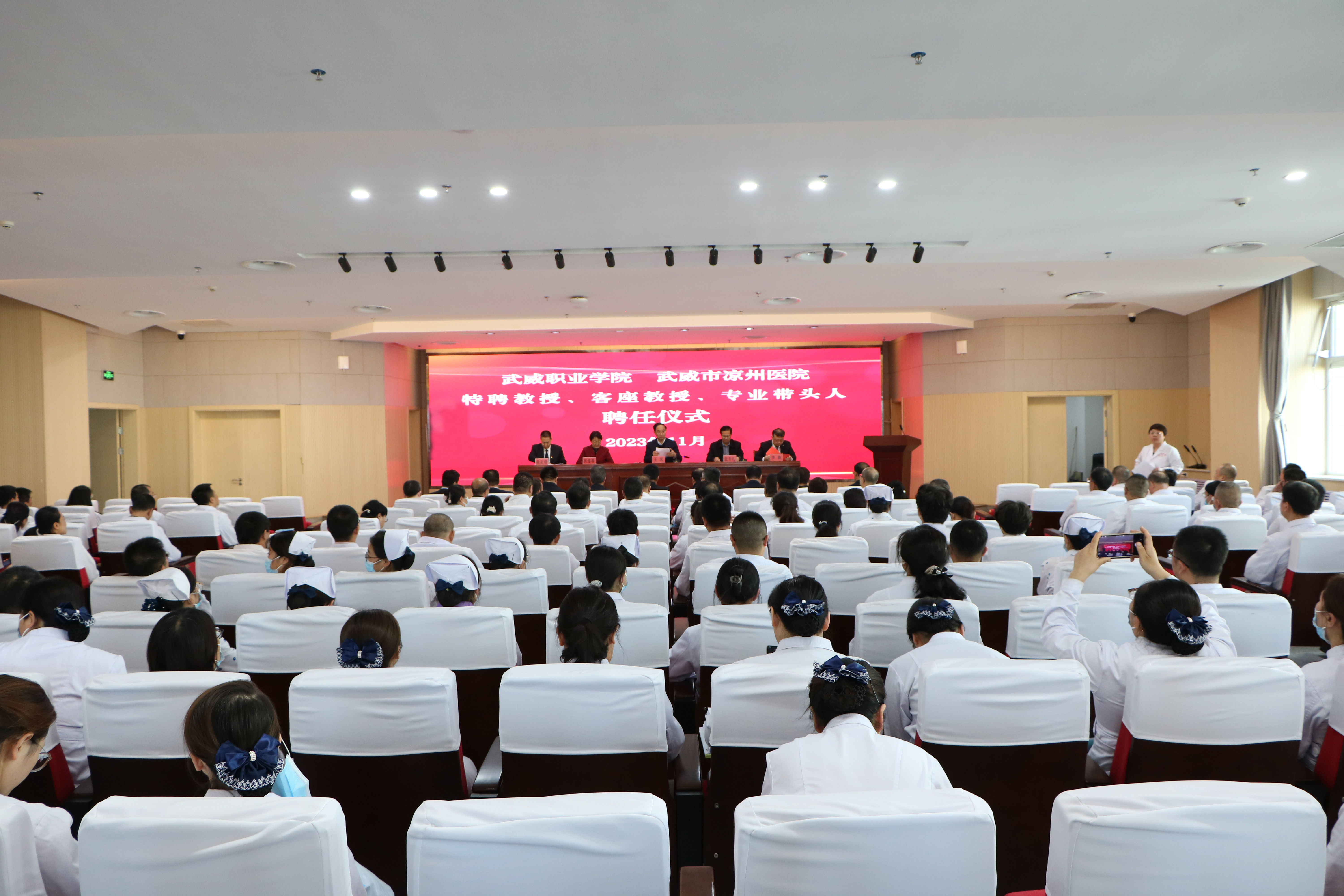 武威職業(yè)學(xué)院相關(guān)部門、二級學(xué)院負責(zé)人,涼州醫(yī)院相關(guān)部門負責(zé)人和醫(yī)護人員代表共320余人參加了聘任儀式。