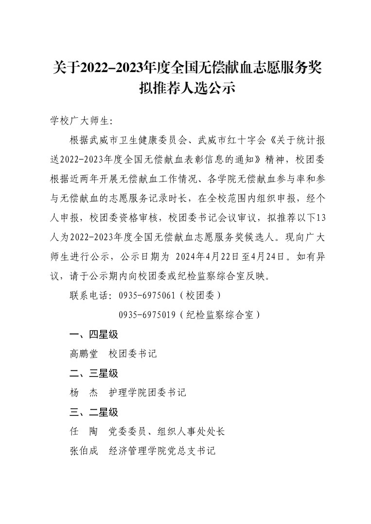 關于2022-2023年度全國無償獻血志愿服務獎擬推薦人選公示