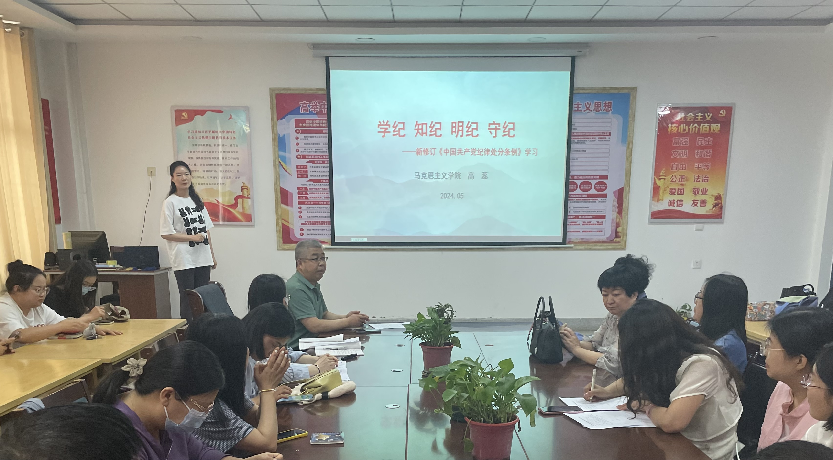 為扎實(shí)推動(dòng)護(hù)理學(xué)院黨紀(jì)學(xué)習(xí)教育走深走實(shí),進(jìn)一步嚴(yán)明政治紀(jì)律和政治規(guī)矩,5月17日,學(xué)院邀請學(xué)校宣講組成員、馬克思主義學(xué)院副教授高蕊對《中國共產(chǎn)黨紀(jì)律處分條例》(以下簡稱《條例》)進(jìn)行專題宣講解讀,學(xué)院黨總支書記張建輝主持宣講活動(dòng),全體黨員干部參加。