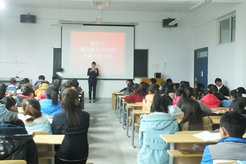 為了深入學(xué)習(xí)貫徹黨的十八大精神,引領(lǐng)廣大學(xué)生為實(shí)現(xiàn)國家富強(qiáng)、民族復(fù)興、人民幸福的偉大“中國夢”而奮發(fā)學(xué)習(xí)、努力奮斗,藥學(xué)系于2013年12月3日組織全體師生開展了以“我與祖國共奮進(jìn)”為主題的演講比賽。