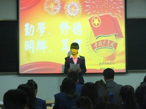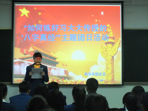 5月6日晚,藥學系組織團學干部和學生代表,在博學樓614室開展了學習習總書記傳授的“八字真經”主題團日活動。