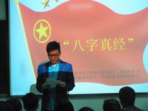 主題團會上,系學生會干部和系團干部以及各班學生代分別就習總書記的“八字真經”的精神通過講故事,說道理等形式進行了表達,活動氣氛熱烈,大家踴躍發(fā)言,從生活、學習各個方面的小事說起,就“八字真經”的內涵進行了深入的剖析。