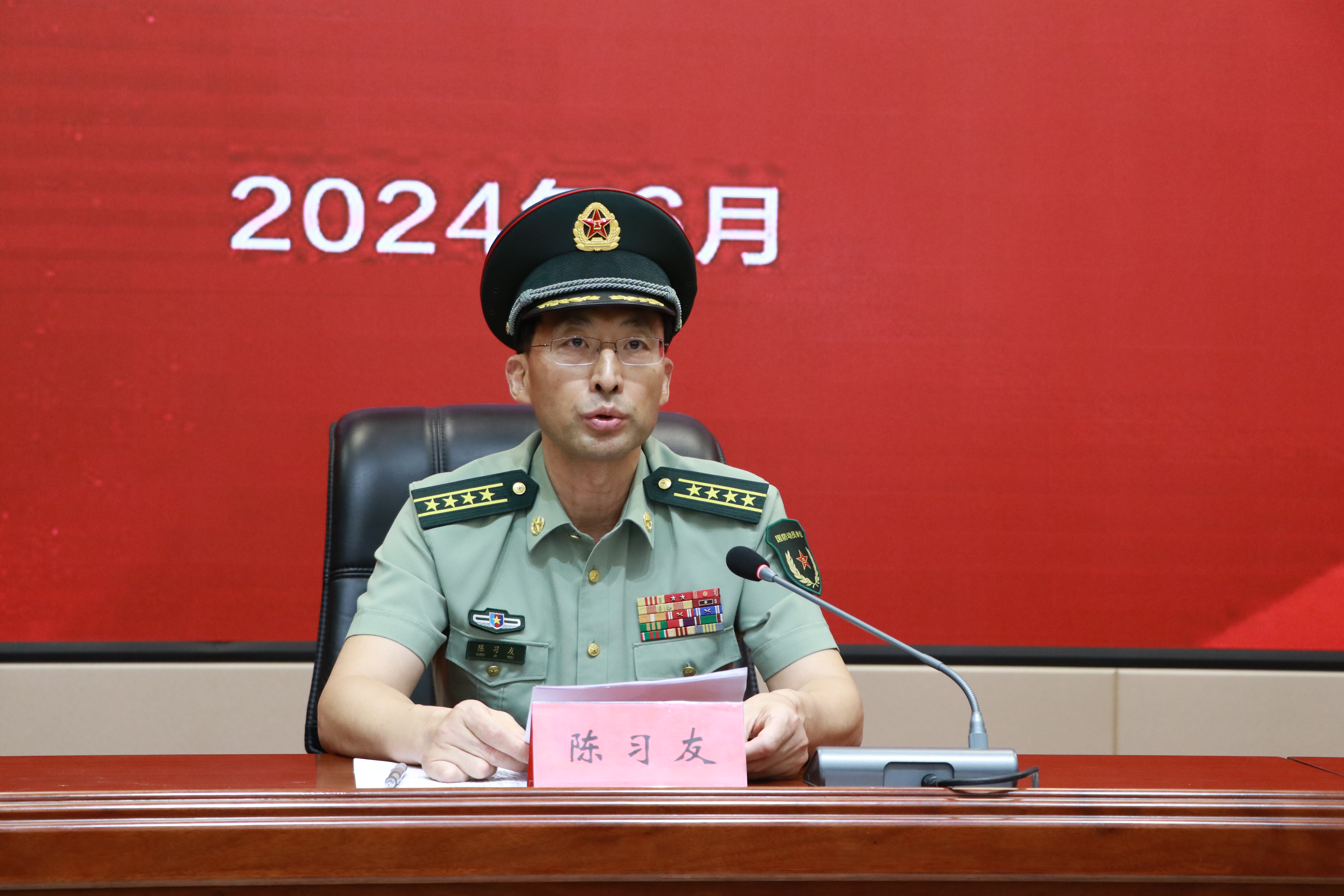 陳習友在講話中肯定了我校近年來的征兵工作,對學校為部隊輸送一大批富有理想、素質全面的兵員表示感謝。他結合當前國際國內形勢和強軍實際,從大學生崇軍尚武,讓青春不負時代擔當;大學生攜筆從戎,讓青春助力強軍夢想;大學生建功軍營,讓青春綻放軍旅榮光三個方面為同學們進行了宣傳動員,希望廣大有志青年把參軍入伍作為人生理想追求,把成才夢融入強國夢強軍夢,在人民軍隊這個大舞臺上書寫人生壯麗篇章。