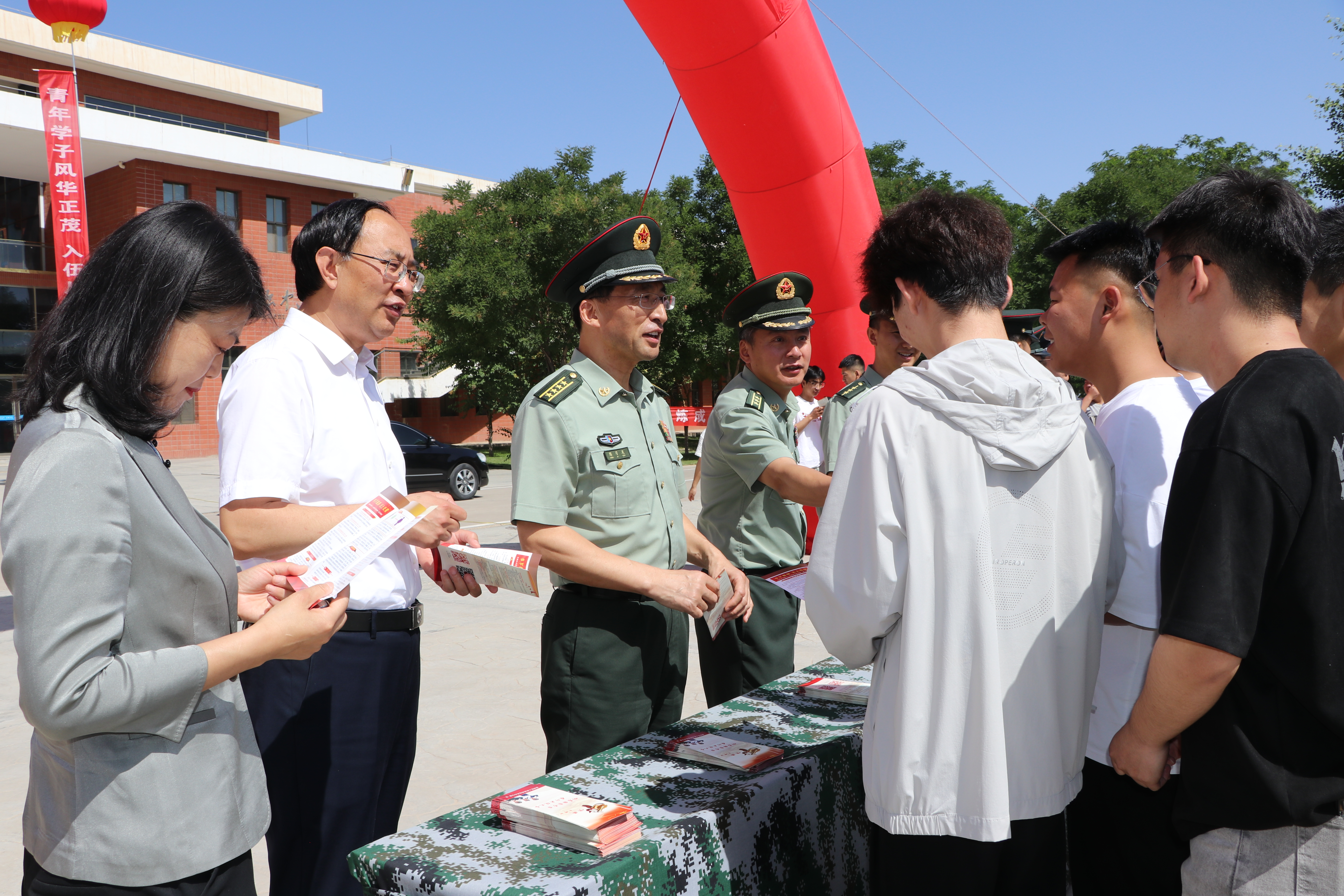 6月14日上午,武威市2024年下半年征兵工作啟動儀式暨征兵宣傳進校園活動在學校舉行。武威軍分區(qū)大校司令員陳習友,涼州區(qū)人武部上校部長金鑫,武威市教育局副局長馬曉麗,學校黨委書記王宏出席啟動儀式。儀式由學校黨委委員、副校長王守云主持。