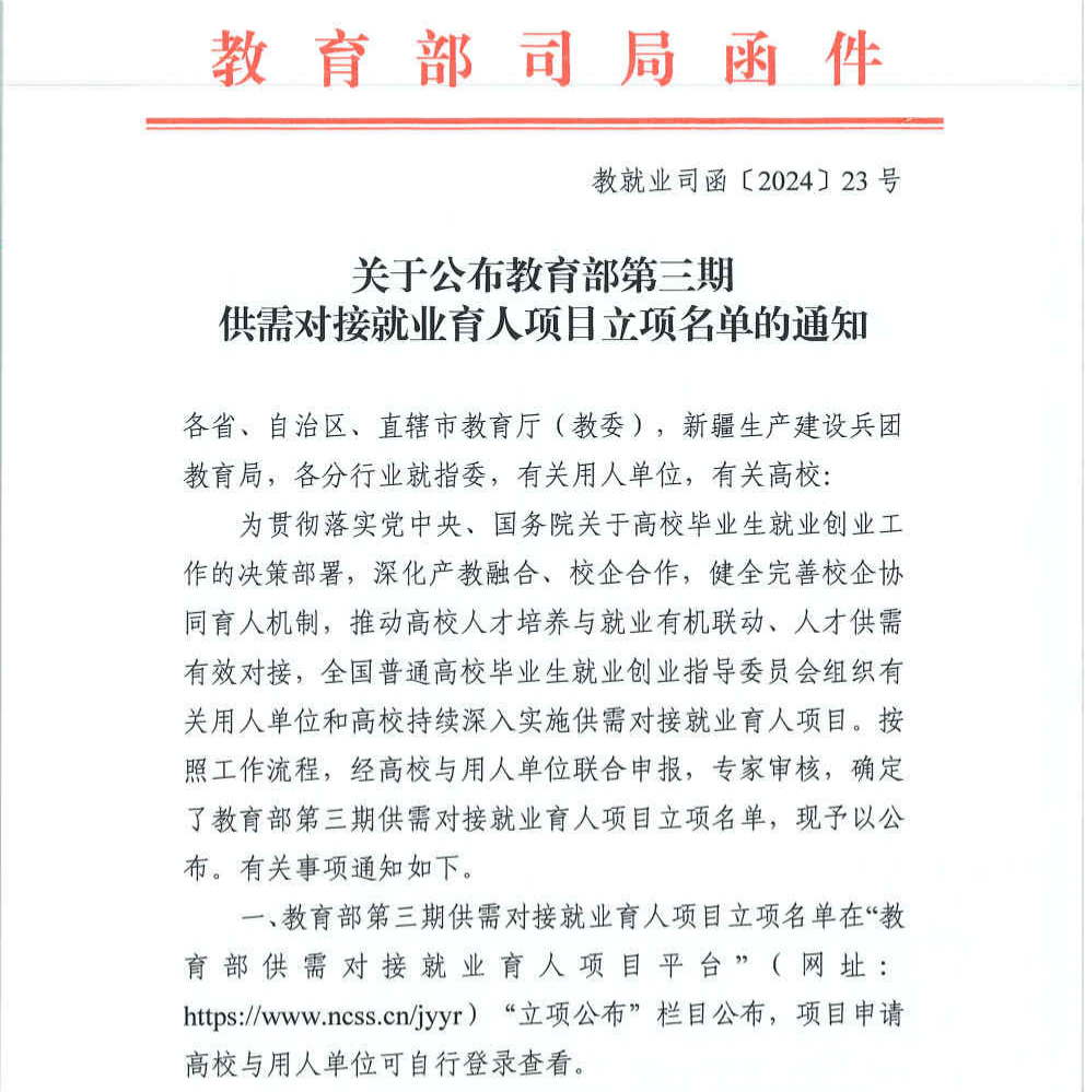 喜訊!學(xué)校獲批教育部第三期供需對接就業(yè)育人項目6項