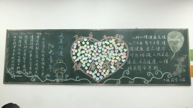 為了迎接評比,各班都做了充分的準(zhǔn)備,認(rèn)真學(xué)習(xí)了解大學(xué)生心理健康日相關(guān)知識,精心構(gòu)思了板報(bào)主題內(nèi)容,從心理健康輔導(dǎo)、心理健康實(shí)例等方面為出發(fā)點(diǎn),以完善自我心理健康為關(guān)鍵點(diǎn),充分運(yùn)用了繪畫、故事等素材,從多方面介紹了心理健康的核心與重要性。最后,15級藥學(xué)1班《陽光心理》和15級藥學(xué)2班的《心靈診所》贏得了一致好評,14級藥學(xué)2班《健康你我》清新可愛的畫風(fēng),也頗受大家的喜愛。