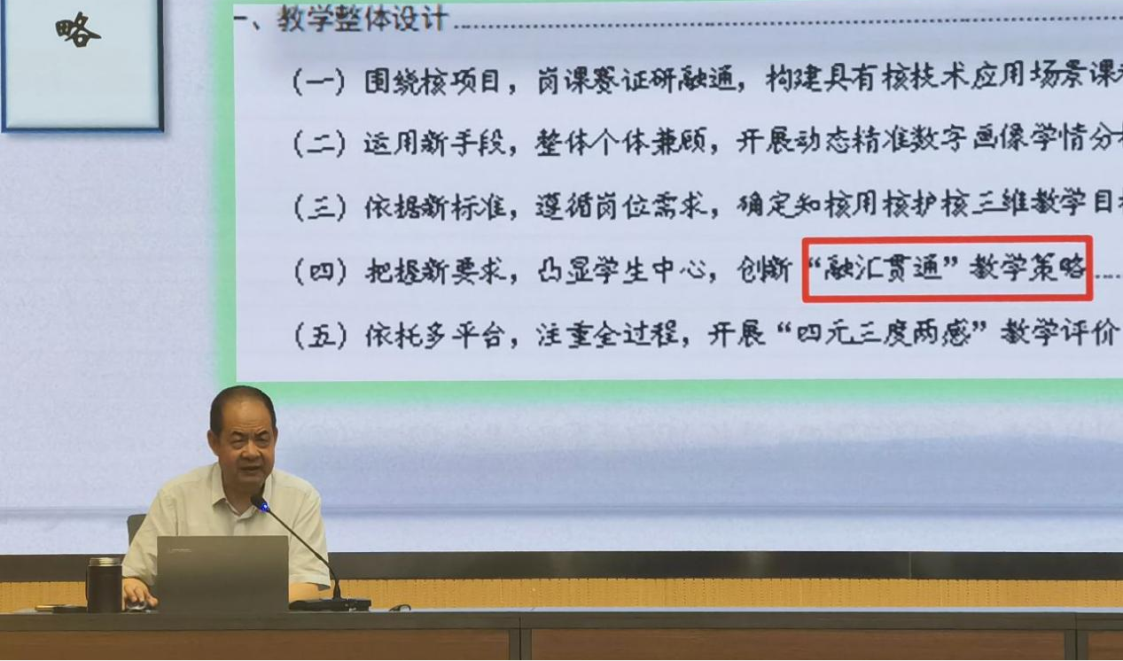 翟存祥以“獲獎作品是如何打磨的——以2023年核技術(shù)應(yīng)用作品為例”為題,對標(biāo)國家教學(xué)能力大賽標(biāo)準(zhǔn),總結(jié)參賽經(jīng)驗,對比賽中教學(xué)團隊的組建、參賽項目的選題、人才培養(yǎng)方案的完善、課程標(biāo)準(zhǔn)的制訂、教學(xué)實施方案和教案撰寫、課堂實錄視頻的拍攝以及賽場答辯的準(zhǔn)備做了深入細致的分析。