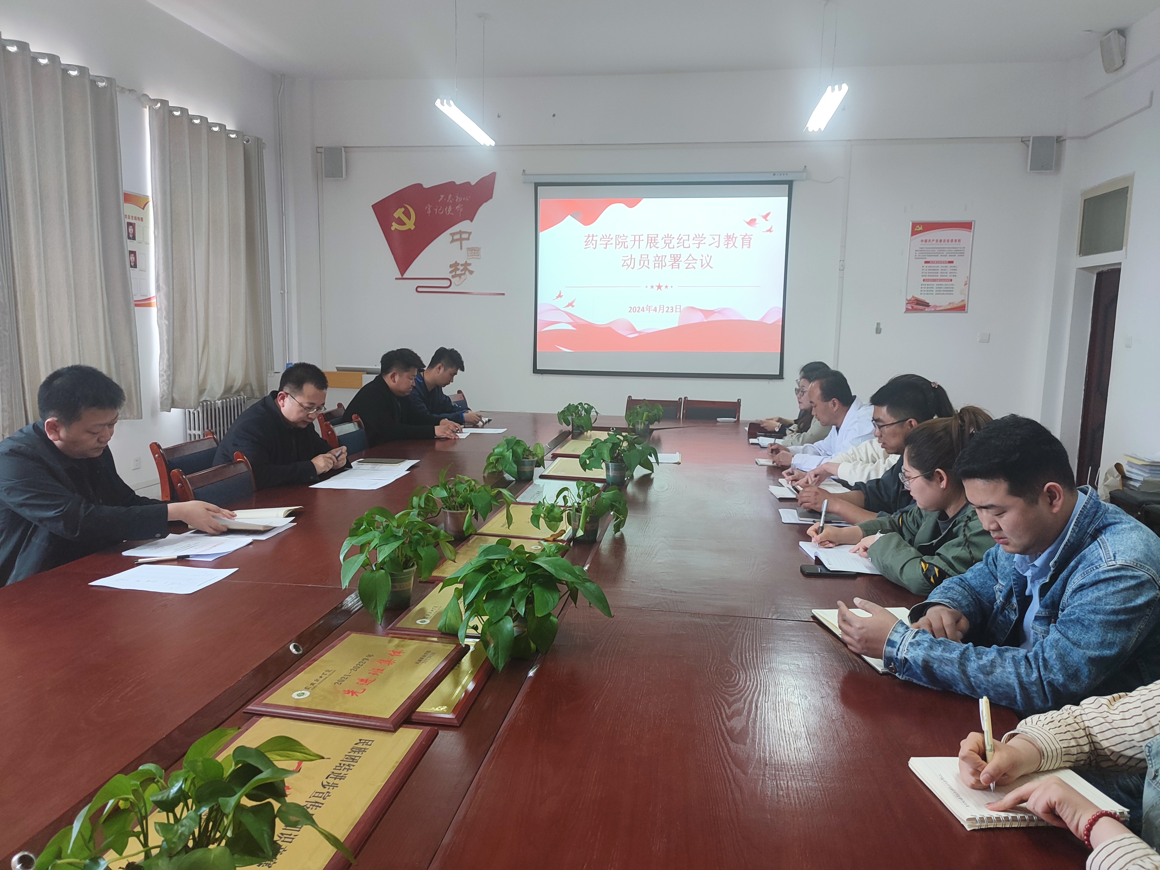 4月23日,藥學院召開黨紀學習教育動員部署會議,貫徹落實《中共中央辦公廳關于在全黨開展黨紀學習教育的通知》精神,落實學校黨紀學習教育工作部署安排,啟動部署學院黨紀學習教育工作。會議由黨總支書記楊建美同志主持,全體黨員參加了會議。