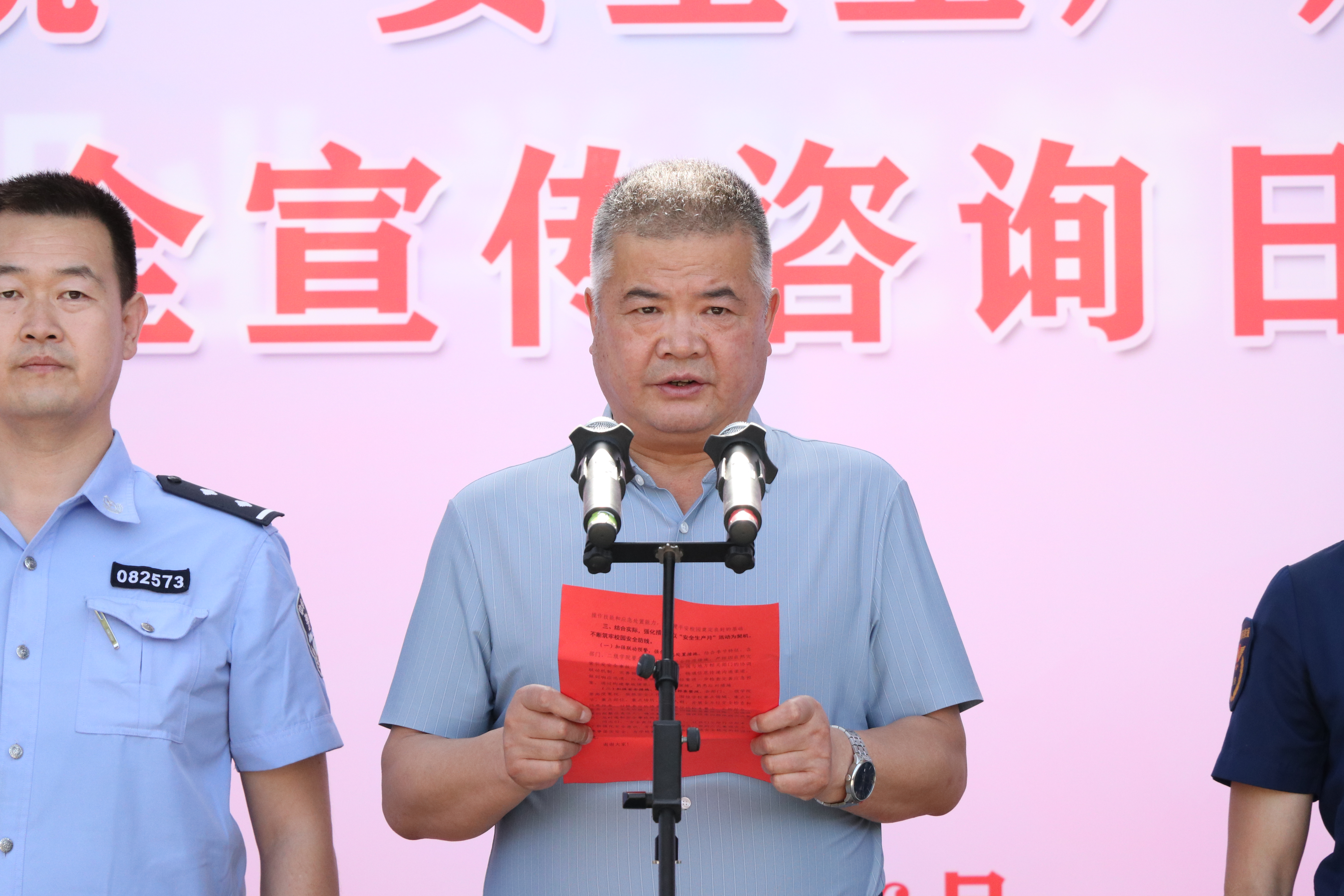6月16日下午,學(xué)校組織開展“安全生產(chǎn)月”活動(dòng)啟動(dòng)儀式暨“6·16”安全宣傳咨詢?nèi)栈顒?dòng),拉開了以“人人講安全、個(gè)個(gè)會(huì)應(yīng)急”為主題的全國(guó)第22個(gè)“安全生產(chǎn)月”活動(dòng)序幕。學(xué)校黨委委員、副校長(zhǎng)王守云、西關(guān)派出所副所長(zhǎng)藺福鵬、各相關(guān)部門及二級(jí)學(xué)院負(fù)責(zé)人出席活動(dòng)。