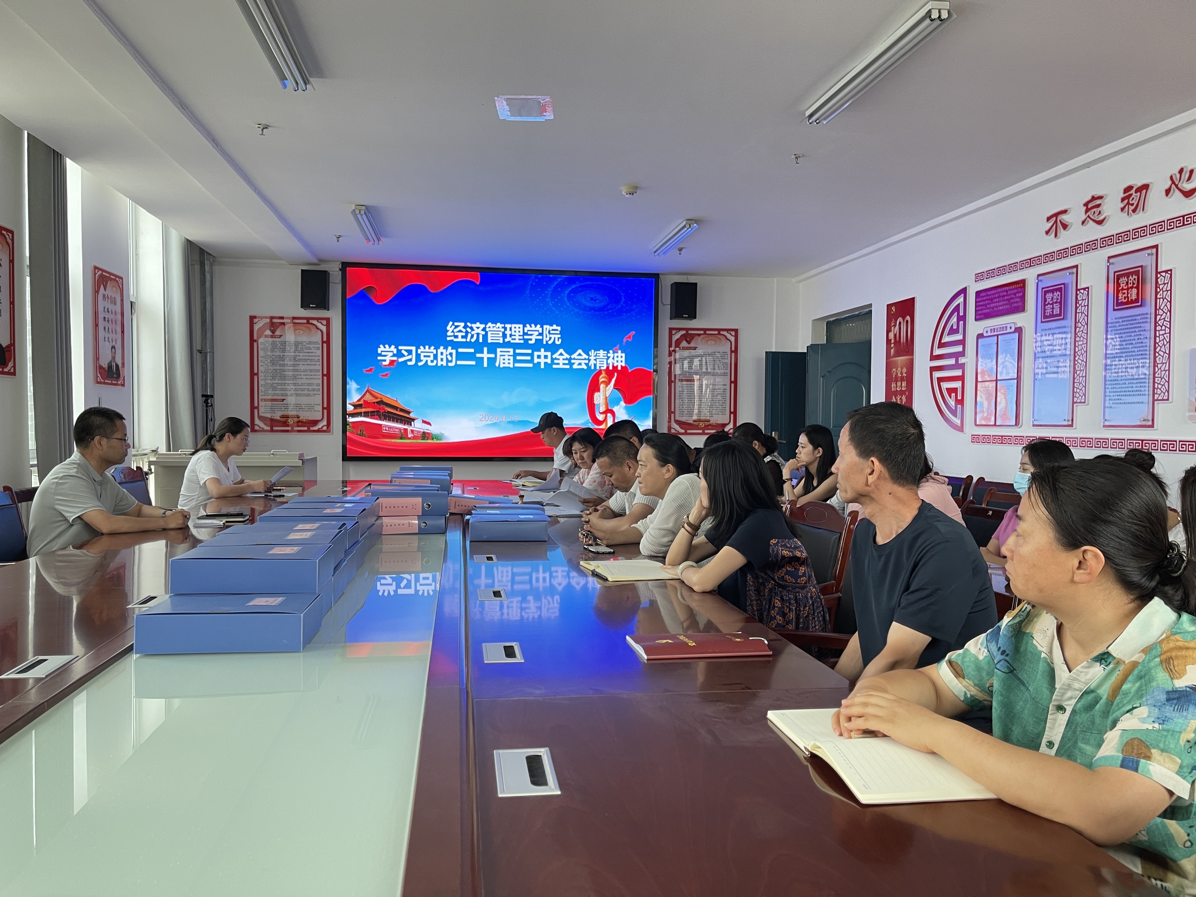 8月13日,經(jīng)濟(jì)管理學(xué)院召開(kāi)黨的二十屆三中全會(huì)精神專題學(xué)習(xí)會(huì)議,傳達(dá)學(xué)習(xí)《習(xí)近平總書記關(guān)于<中共中央關(guān)于進(jìn)一步全面深化改革、推進(jìn)中國(guó)式現(xiàn)代化的決定>的說(shuō)明》《中國(guó)共產(chǎn)黨第二十屆中央委員會(huì)第三次全體會(huì)議公報(bào)》《中共中央關(guān)于進(jìn)一步全面深化改革推進(jìn)中國(guó)式現(xiàn)代化的決定》等內(nèi)容。會(huì)議由學(xué)院黨總支書記、院長(zhǎng)張伯成主持,全體教職工參加會(huì)議。
