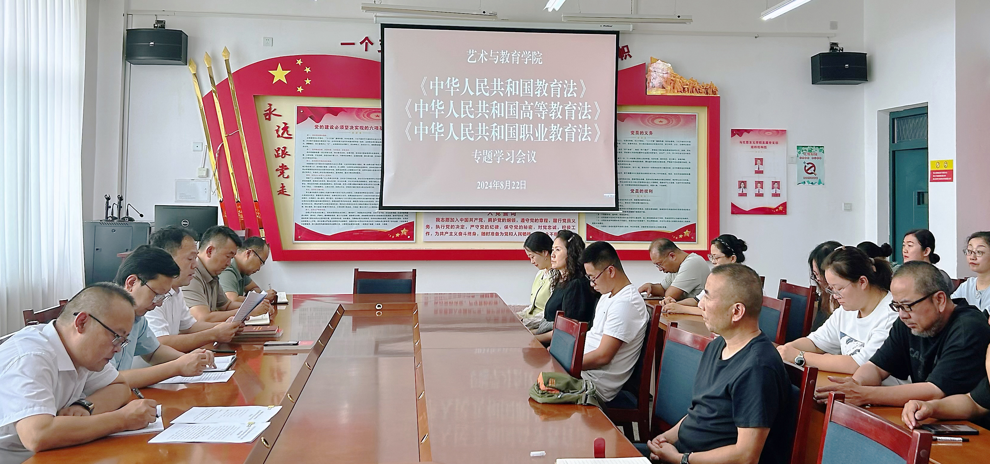 為進(jìn)一步提高教師的法律法規(guī)意識(shí),加強(qiáng)教師的師德師風(fēng)建設(shè),轉(zhuǎn)變觀念、解放思想,樹立現(xiàn)代職業(yè)教育觀念,扎實(shí)推動(dòng)教育教學(xué)工作高質(zhì)量發(fā)展,8月22日下午,藝術(shù)與教育學(xué)院組織全體教職工專題學(xué)習(xí)《中華人民共和國(guó)教育法》《中華人民共和國(guó)高等教育法》《中華人民共和國(guó)職業(yè)教育法》等教育相關(guān)法律法規(guī)及政策文件。會(huì)議由黨總支書記王政主持。