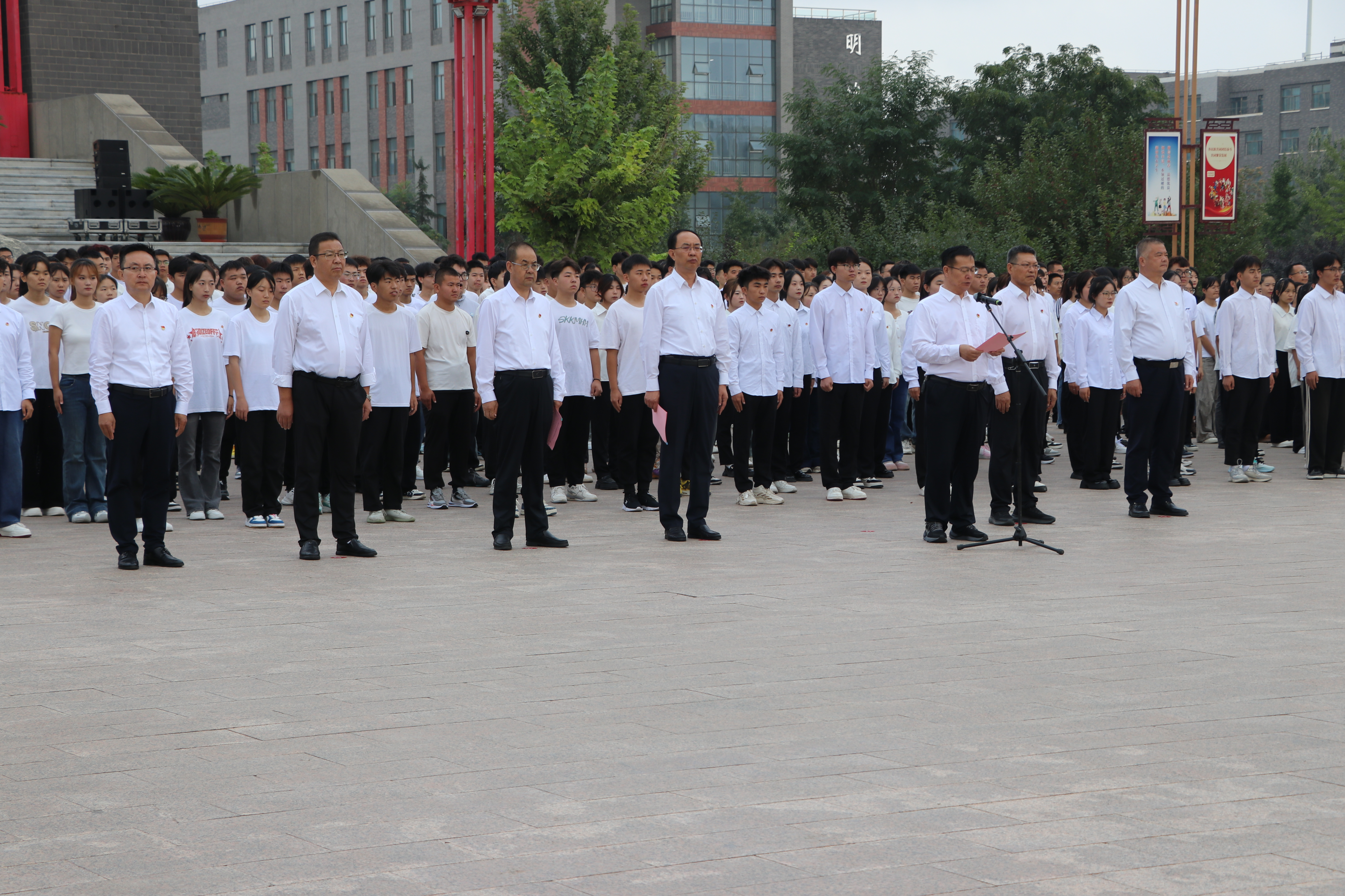 9月2日上午,學校在圖書館東側國旗廣場舉行新學期升國旗儀式,黨委書記王宏向全體師生講授“開學第一課”。學校領導班子成員、全體中層干部,2024年新入職教師、退伍大學生士兵代表和各二級學院師生代表共480余人參加活動,黨委副書記、校長張開禮主持活動。