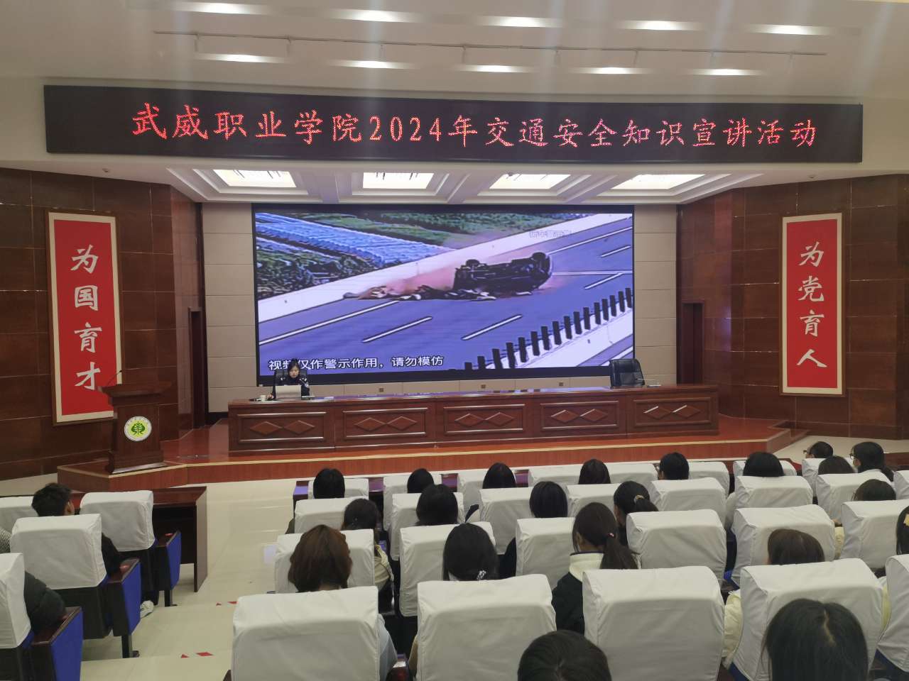 為進(jìn)一步推進(jìn)平安校園建設(shè),增強(qiáng)師生的交通安全意識,預(yù)防和減少交通事故的發(fā)生。10月24日,學(xué)校邀請武威市公安局交警支隊王穎警官來學(xué)校開展交通安全知識宣講活動,為師生們帶來了一堂深刻的交通安全警示課。宣講活動由安全保衛(wèi)處處長李欣主持。