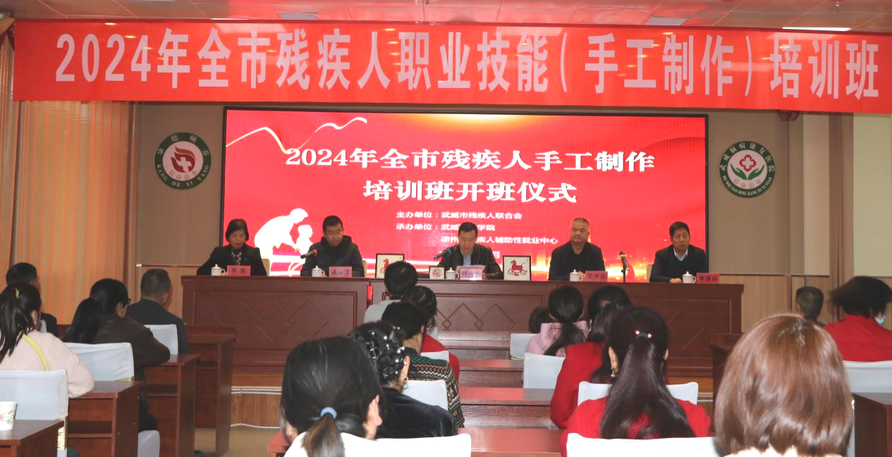 10月29日下午,由武威市殘聯(lián)主辦、我校承辦的2024年全市殘疾人職業(yè)技能(手工制作)培訓(xùn)班在涼州區(qū)殘疾人托養(yǎng)中心(武威職業(yè)學(xué)院非遺文創(chuàng)實(shí)踐實(shí)訓(xùn)基地)順利開班。武威市殘疾人聯(lián)合會黨組成員、副理事長柯長文,涼州區(qū)康德頤養(yǎng)院總經(jīng)理李福山,涼州剪紙市級非遺代表性傳承人鄭霞,我校黨委委員、副校長王守云及全體參訓(xùn)學(xué)員出席開班儀式。開班儀式由創(chuàng)新創(chuàng)業(yè)學(xué)院副院長孟建文主持。