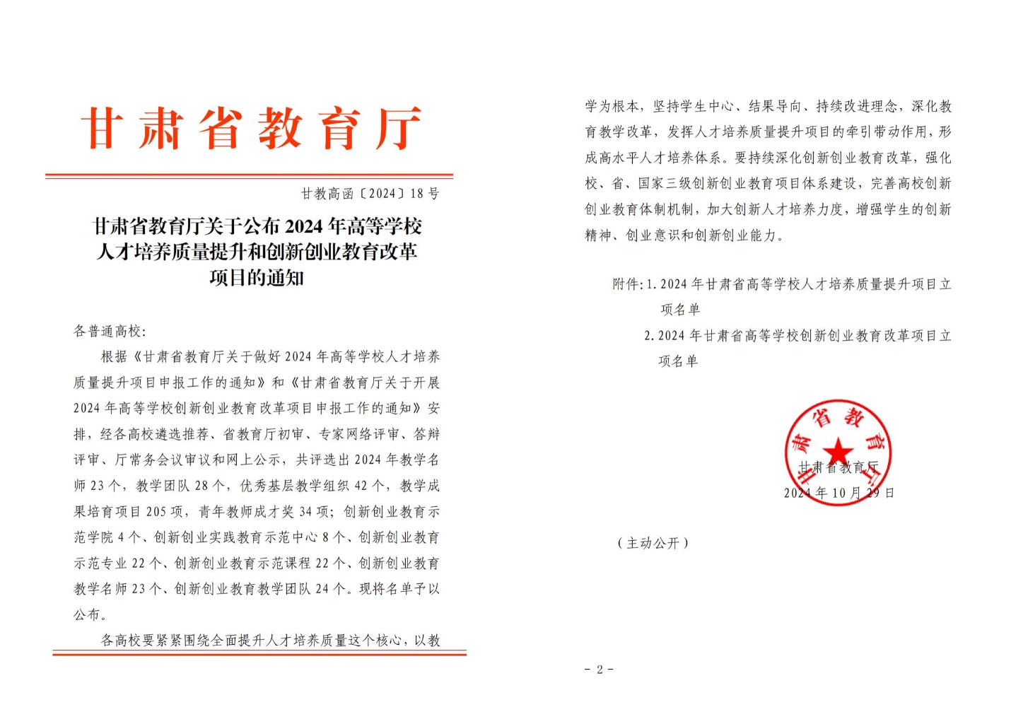 創(chuàng)新創(chuàng)業(yè)教育改革項(xiàng)目是為深入貫徹落實(shí)《國務(wù)院辦公廳關(guān)于進(jìn)一步支持大學(xué)生創(chuàng)新創(chuàng)業(yè)的指導(dǎo)意見》(國辦發(fā)〔2021〕35 號(hào))、《甘肅省教育廳等十三部門印發(fā)〈甘肅省關(guān)于進(jìn)一步支持大學(xué)生創(chuàng)新創(chuàng)業(yè)的若干措施〉的通知》(甘教高〔2022〕3 號(hào))等精神,推動(dòng)全省高等學(xué)校持續(xù)深化創(chuàng)新創(chuàng)業(yè)教育改革,主動(dòng)融入產(chǎn)業(yè)轉(zhuǎn)型升級(jí)和創(chuàng)新驅(qū)動(dòng)發(fā)展戰(zhàn)略,提高人才培養(yǎng)質(zhì)量的重要舉措。本次認(rèn)定的4項(xiàng)創(chuàng)新創(chuàng)業(yè)教育改革項(xiàng)目,是對(duì)我校創(chuàng)新創(chuàng)業(yè)工作的肯定,也對(duì)學(xué)校高質(zhì)量發(fā)展,提升人才培養(yǎng)質(zhì)量具有重要的推動(dòng)作用。