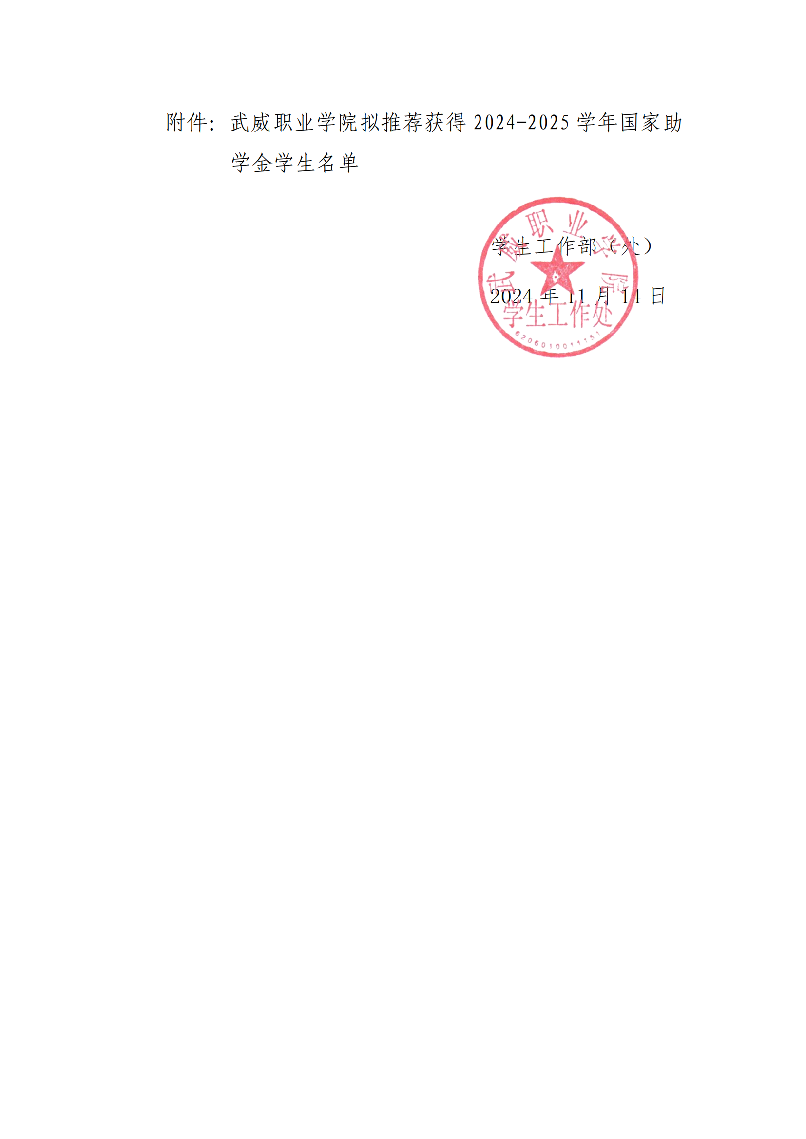 武威職業(yè)學(xué)院關(guān)于2024-2025學(xué)年國家助學(xué)金評選結(jié)果的公示