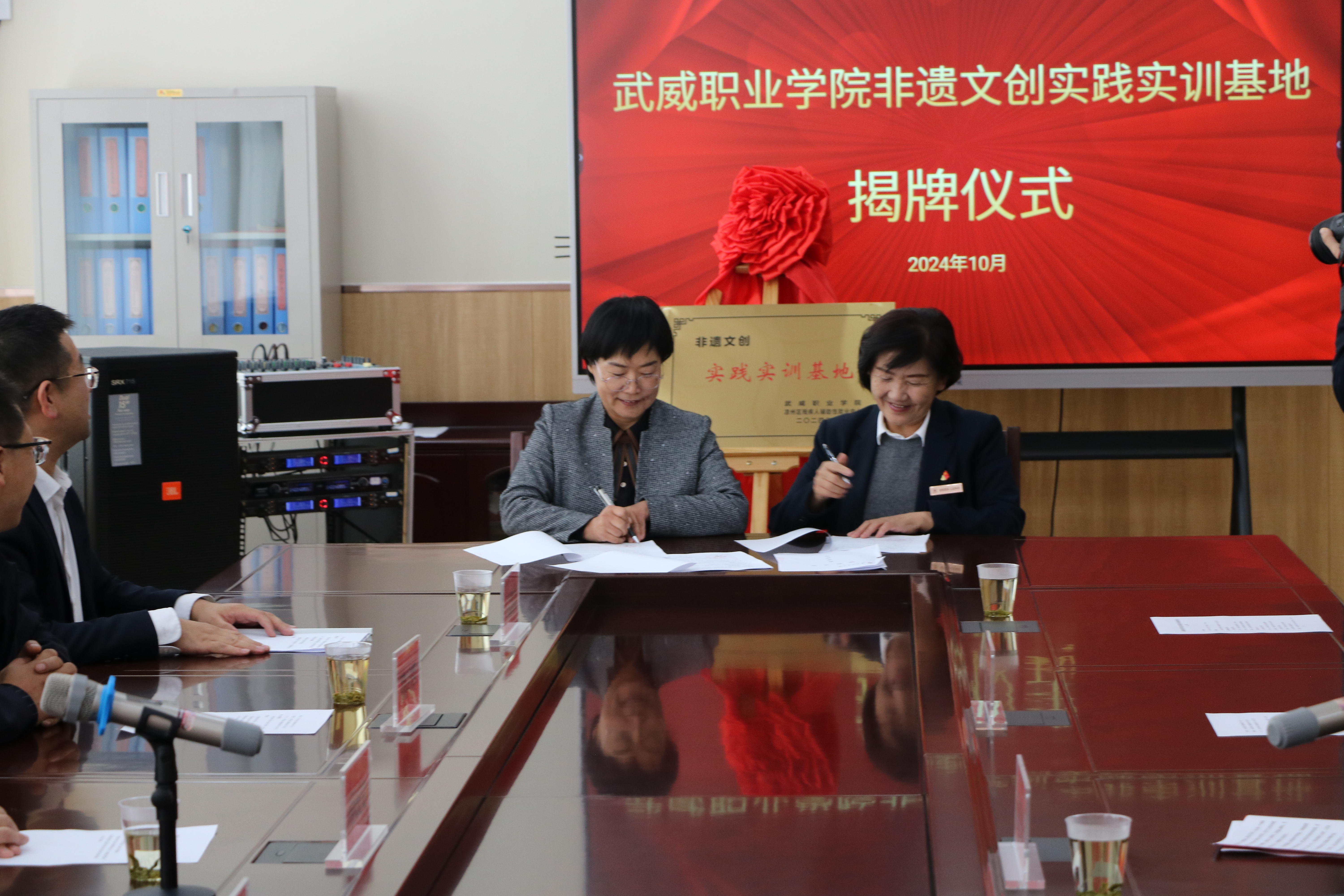 會上,武威市殘疾人聯(lián)合會副理事長柯長文,武威職業(yè)學(xué)院黨委委員、副校長何毅為“非遺文創(chuàng)實(shí)訓(xùn)實(shí)踐基地”揭牌。