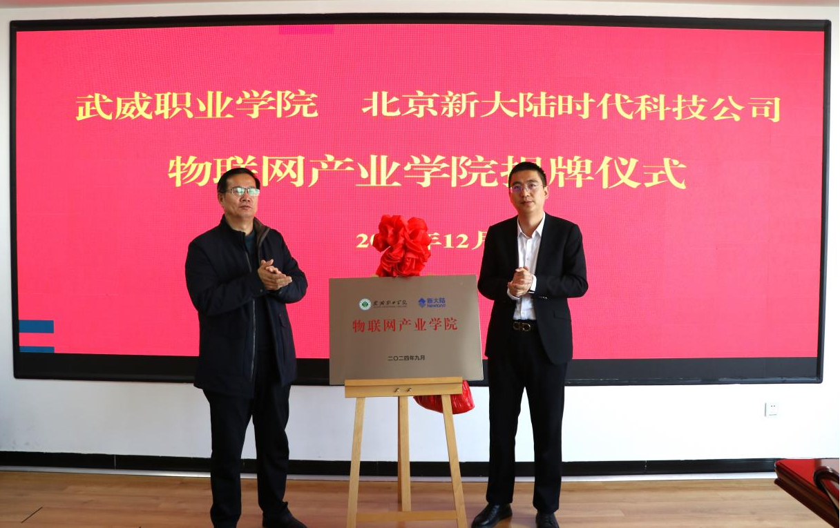 為全面深化產(chǎn)教融合,加強校企合作,進(jìn)一步提高我校人才培養(yǎng)質(zhì)量。12月3日,學(xué)校在能源科技樓811會議室舉行武威職業(yè)學(xué)院和北京新大陸時代科技公司物聯(lián)網(wǎng)產(chǎn)業(yè)學(xué)院簽約暨揭牌儀式。北京新大陸時代科技公司西北區(qū)總監(jiān)劉寧、技術(shù)總監(jiān)樊斌,相關(guān)業(yè)務(wù)部門負(fù)責(zé)人,學(xué)校校長、黨委副書記張開禮、黨委副書記翟存祥、相關(guān)部門負(fù)責(zé)人及教師代表參加活動。黨委委員、副校長王永緒主持儀式。