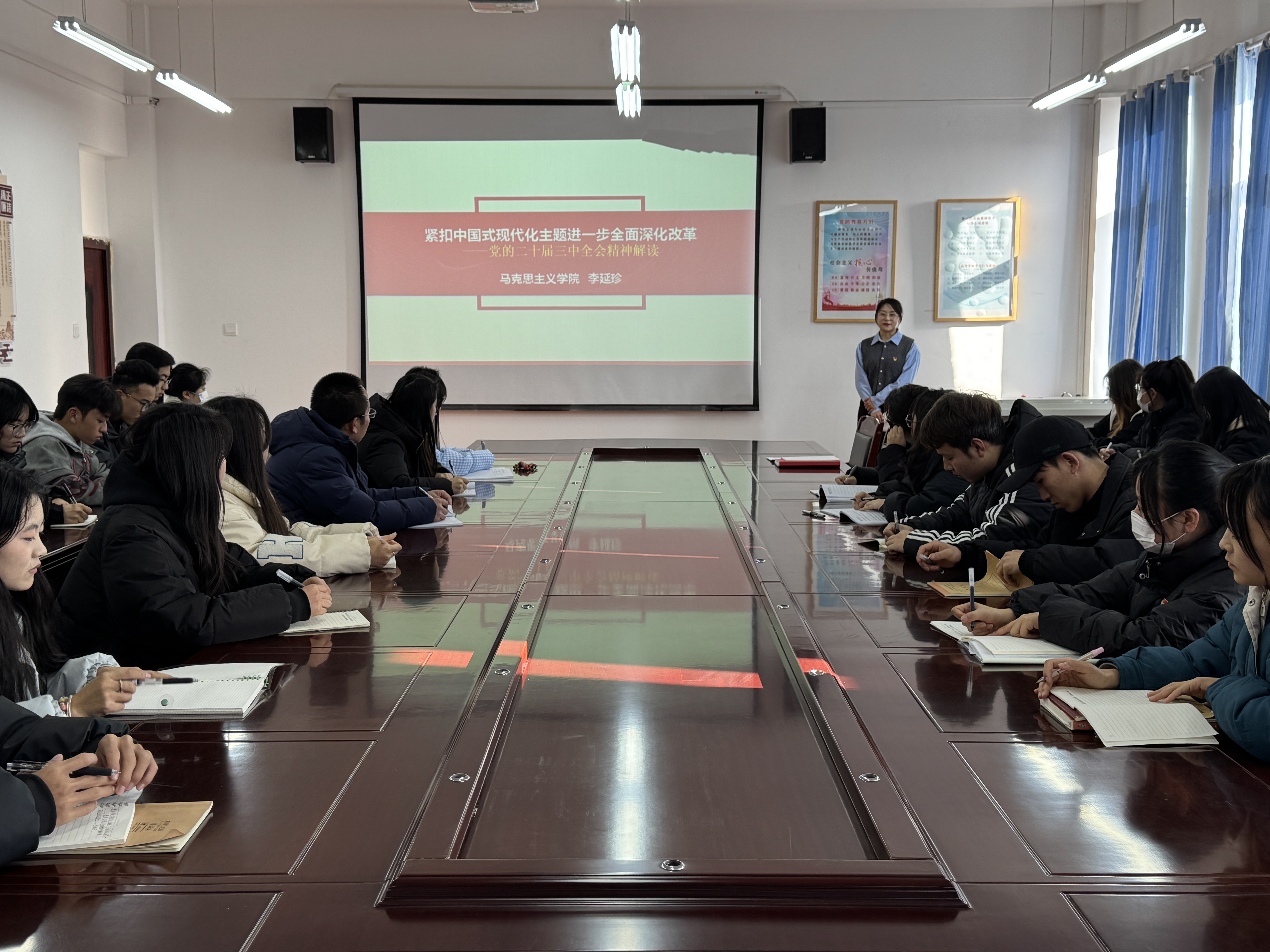 宣講人對黨的二十屆三中全會(huì)精神進(jìn)行了深入解讀,闡述了進(jìn)一步全面深化改革的總目標(biāo),強(qiáng)調(diào)了推進(jìn)中國式現(xiàn)代化進(jìn)程中教育、醫(yī)療等領(lǐng)域改革的重要意義,讓師生們深刻認(rèn)識到全會(huì)為新時(shí)代新征程黨和國家事業(yè)發(fā)展指明的前進(jìn)方向、確立的行動(dòng)指南。
