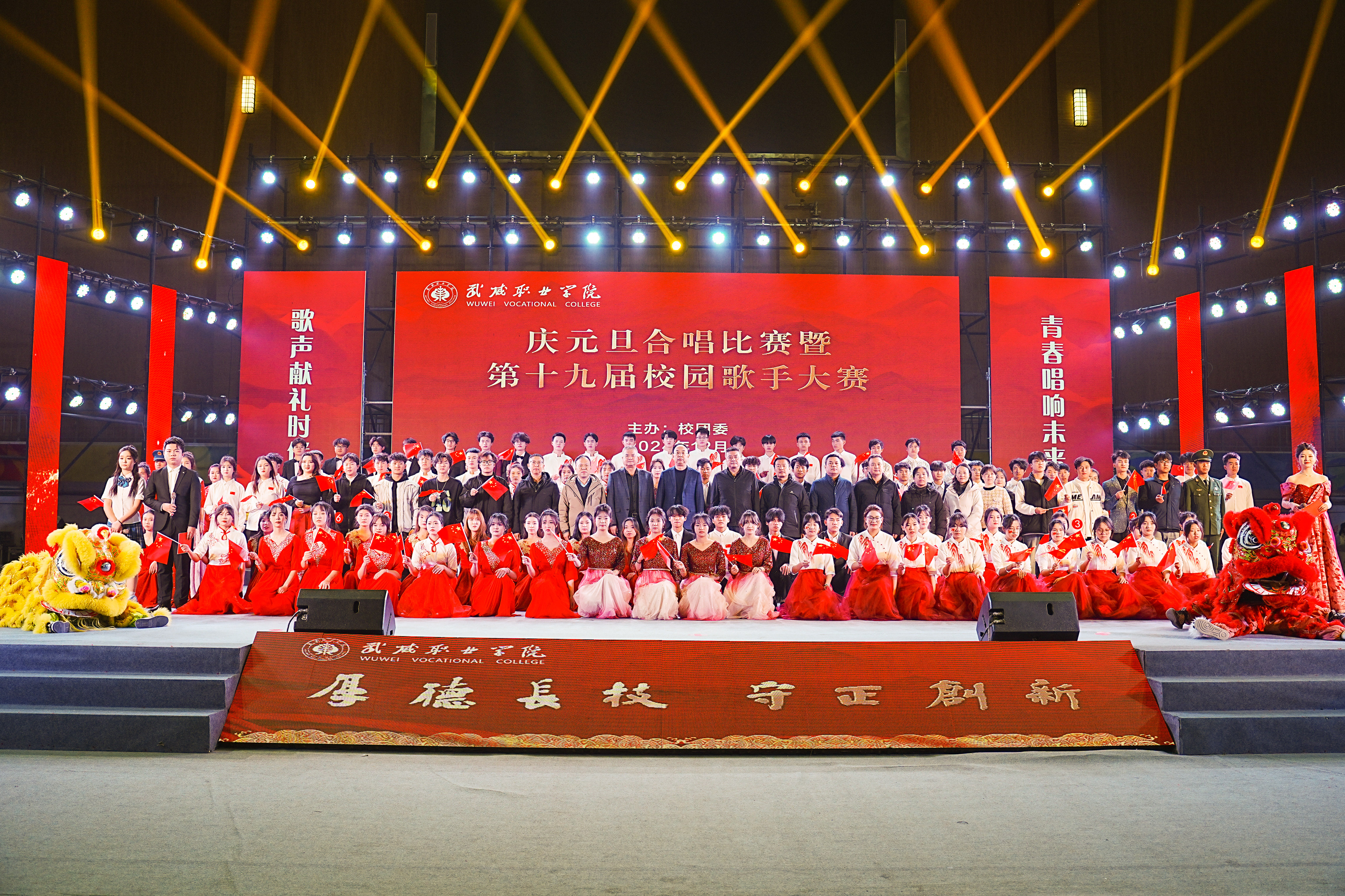 歌聲獻(xiàn)禮時(shí)代,青春唱響未來(lái)。12月26日晚,學(xué)?!皯c元旦”合唱比賽暨第十九屆校園歌手大賽在體育館成功舉辦。學(xué)校黨委書(shū)記王宏出席活動(dòng)并為獲獎(jiǎng)集體和個(gè)人頒獎(jiǎng),黨委委員、副校長(zhǎng)王守云出席活動(dòng),各二級(jí)學(xué)院和相關(guān)部門負(fù)責(zé)人與2000余名師生現(xiàn)場(chǎng)觀看了比賽。