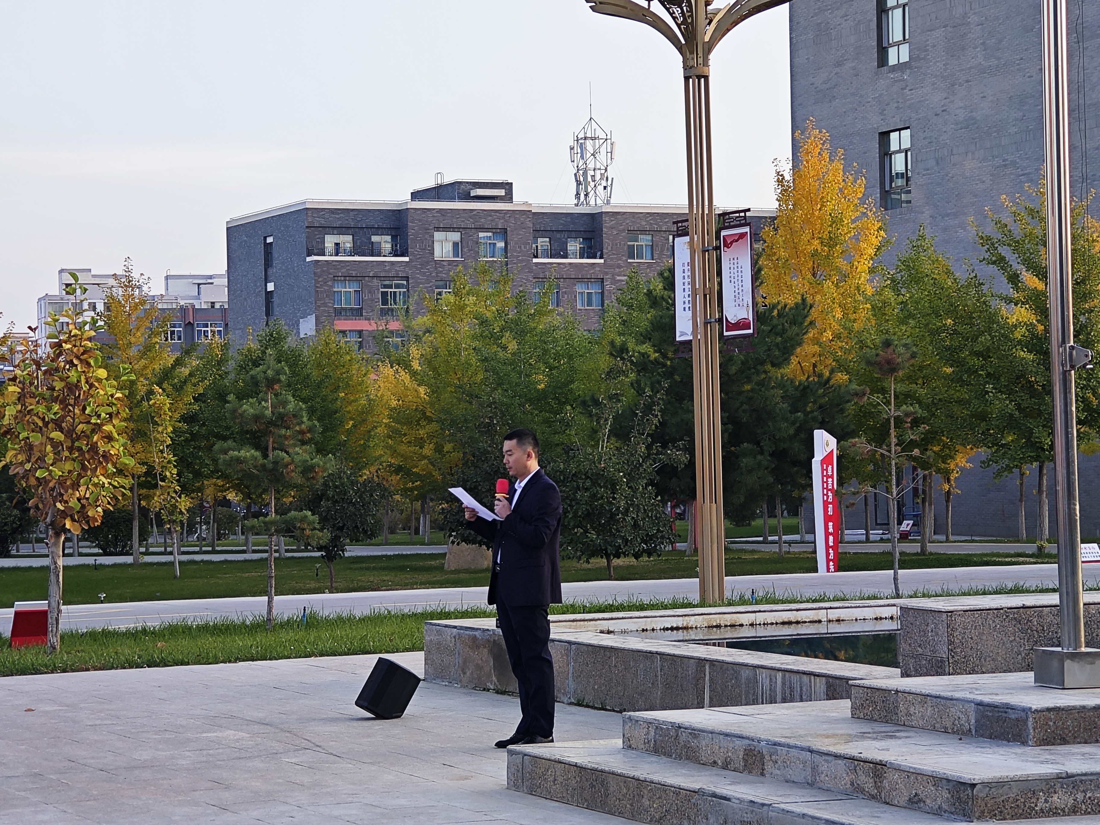 10月14日,信息技術學院在圖書館廣場舉行升國旗儀式。學院黨總支書記史子新及全體師生參加。
