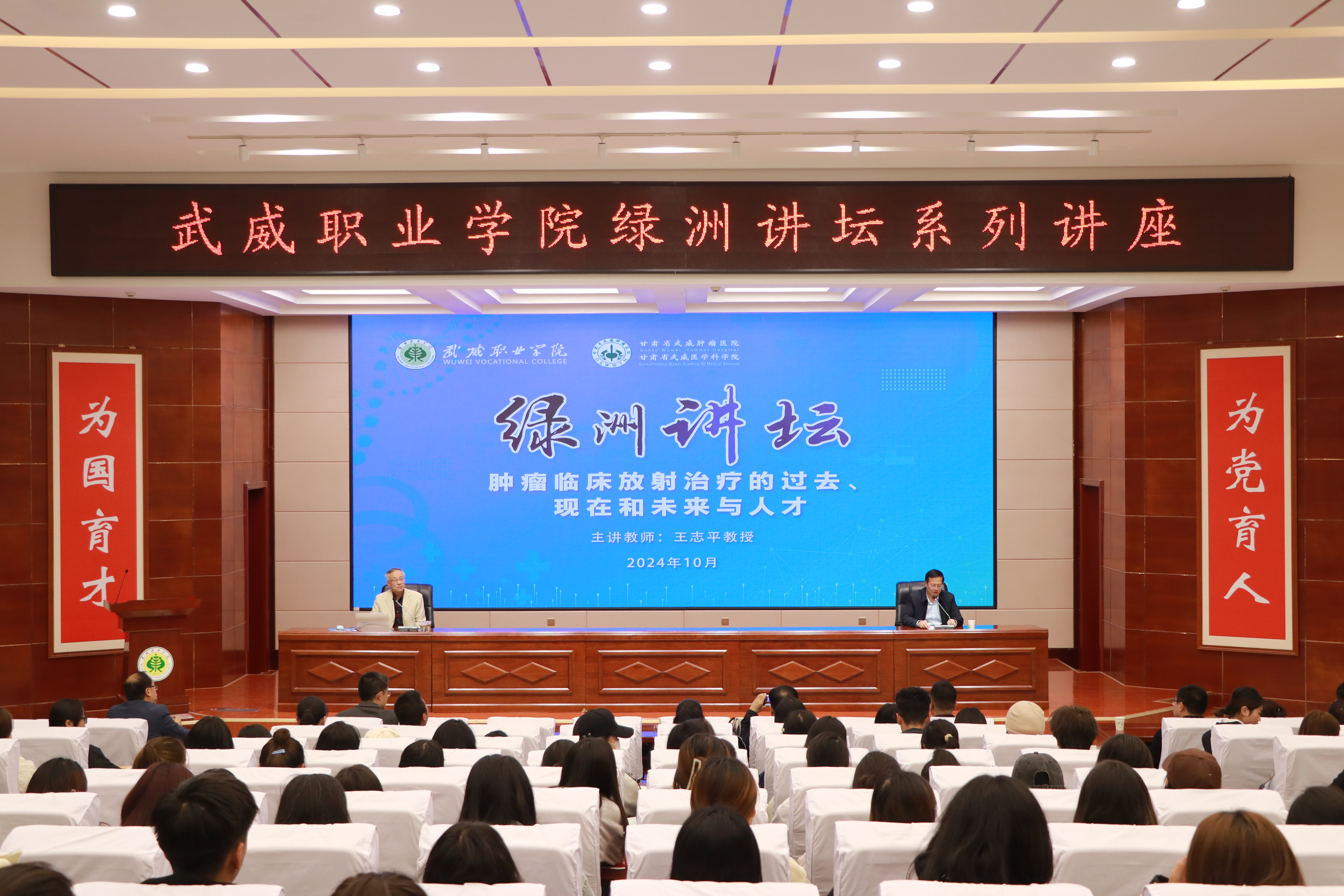 報告會由學(xué)校校長、黨委副書記張開禮主持,特邀蘭州大學(xué)第二醫(yī)院王志平教授作了“腫瘤臨床放射治療的過去、現(xiàn)在和未來與人才”的主題講座,甘肅省武威醫(yī)學(xué)科學(xué)院腫瘤醫(yī)院醫(yī)護人員代表、蘭州大學(xué)實習(xí)生代表和學(xué)校師生代表共計220余人參加了報告會。