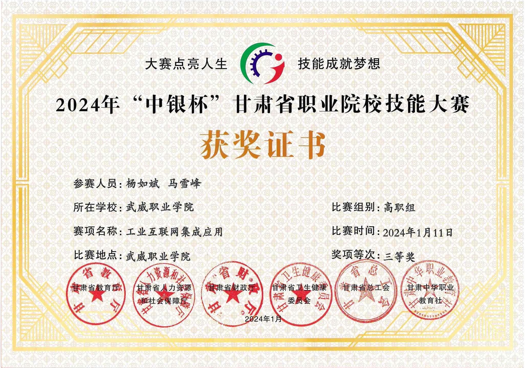 獲2024年“中銀杯”甘肅省職業(yè)院校技能大賽“三等獎”