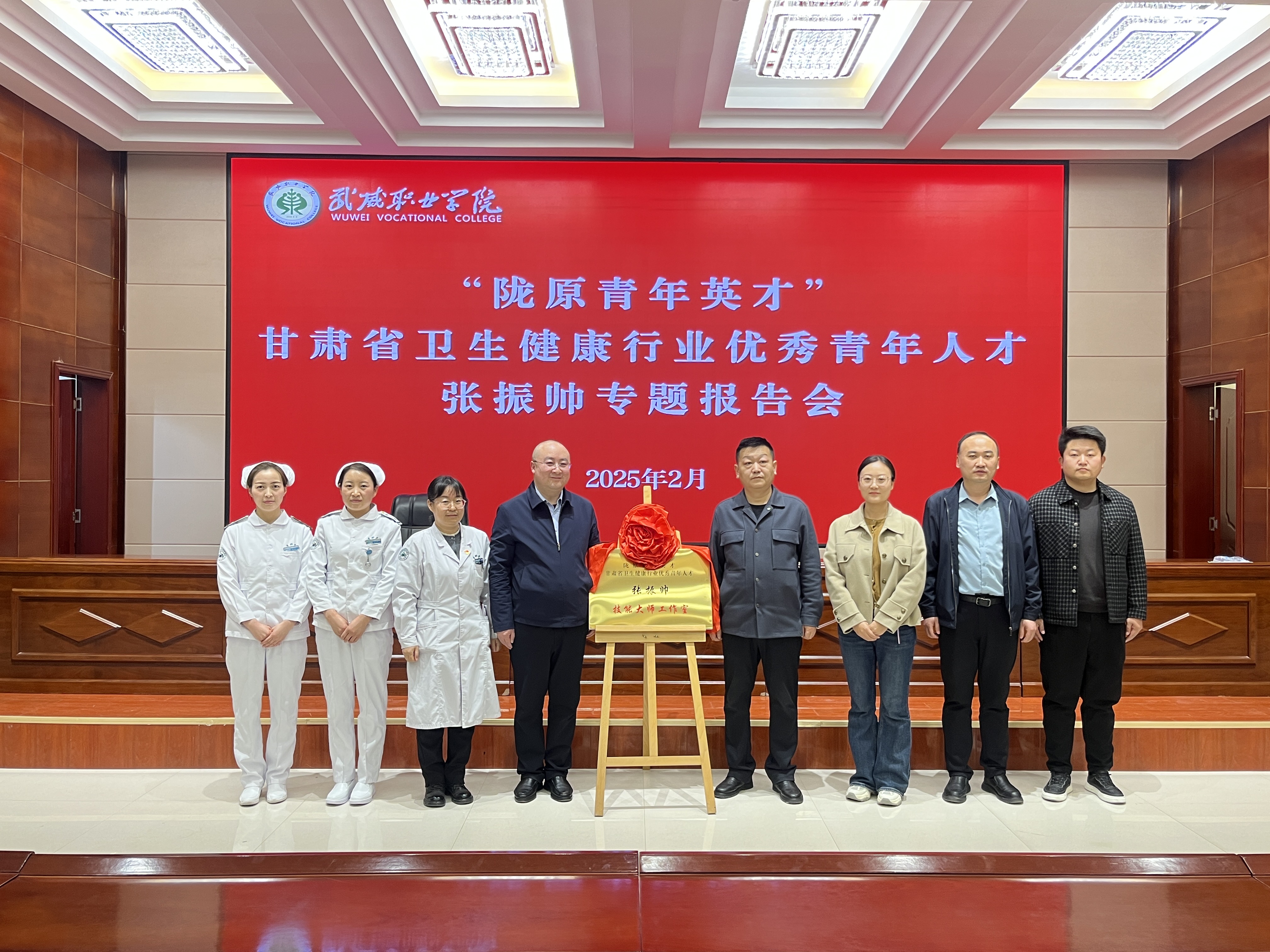 2月27日,“隴原青年英才”、甘肅省衛(wèi)生健康行業(yè)優(yōu)秀青年人才張振帥技能大師工作室揭牌儀式暨專題報告會在武威職業(yè)學院菁英廳隆重舉行。藥學院副院長馬琪主持報告會,200余名師生代表參會,旨在傳承中醫(yī)藥文化,發(fā)揮技能大師引領作用,培育高素質中醫(yī)藥技能人才。