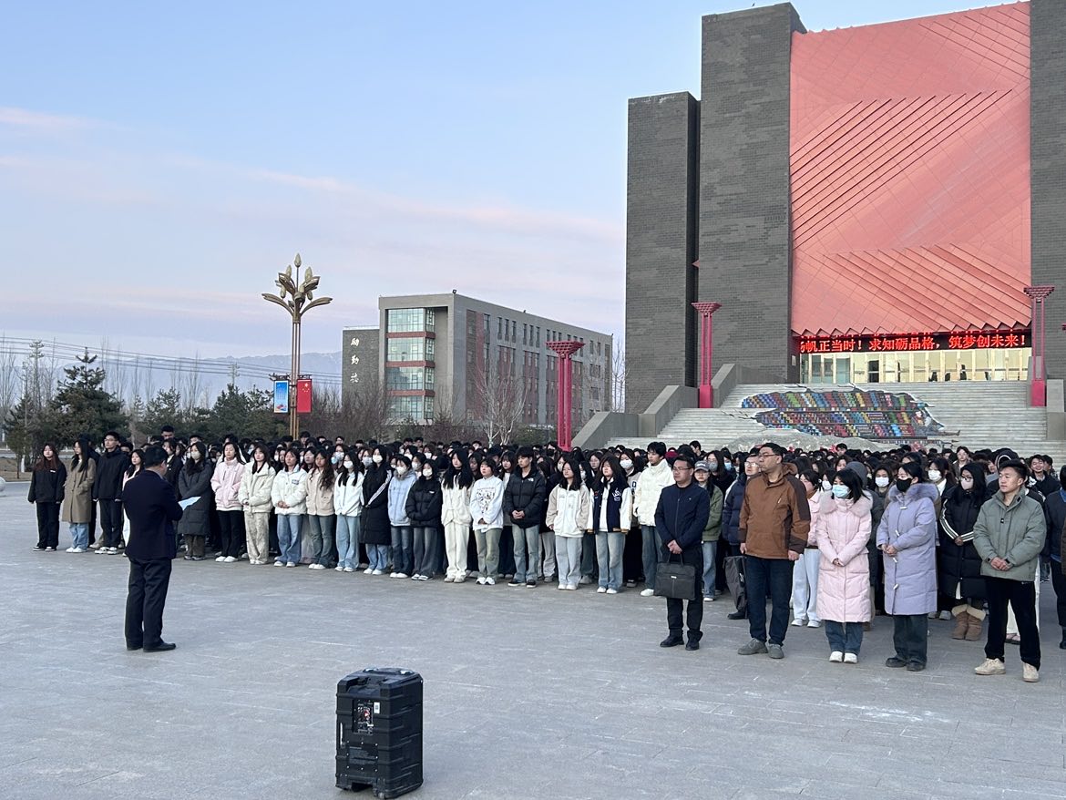? 2025年3月10日,醫(yī)學(xué)技術(shù)學(xué)院在學(xué)校圖書(shū)館東廣場(chǎng)舉行新學(xué)期升國(guó)旗儀式,全體輔導(dǎo)員、班主任及在校學(xué)生參加。? ? ?