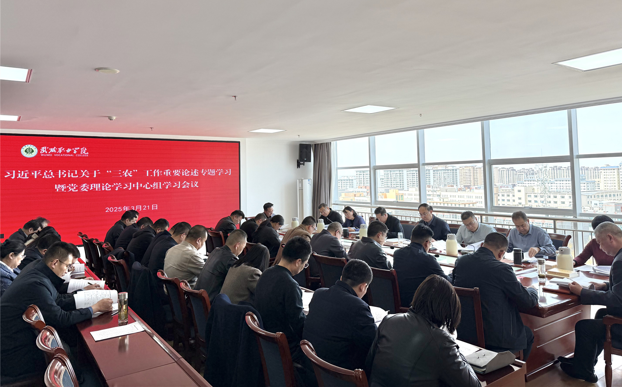3月21日,學(xué)校召開(kāi)黨委理論學(xué)習(xí)中心組學(xué)習(xí)會(huì)議,專題學(xué)習(xí)研討習(xí)近平總書記關(guān)于“三農(nóng)”工作重要論述。校黨委理論學(xué)習(xí)中心組成員參加,校長(zhǎng)李海軍,各部門、二級(jí)學(xué)院主要負(fù)責(zé)人列席。黨委書記王宏主持會(huì)議并講話。