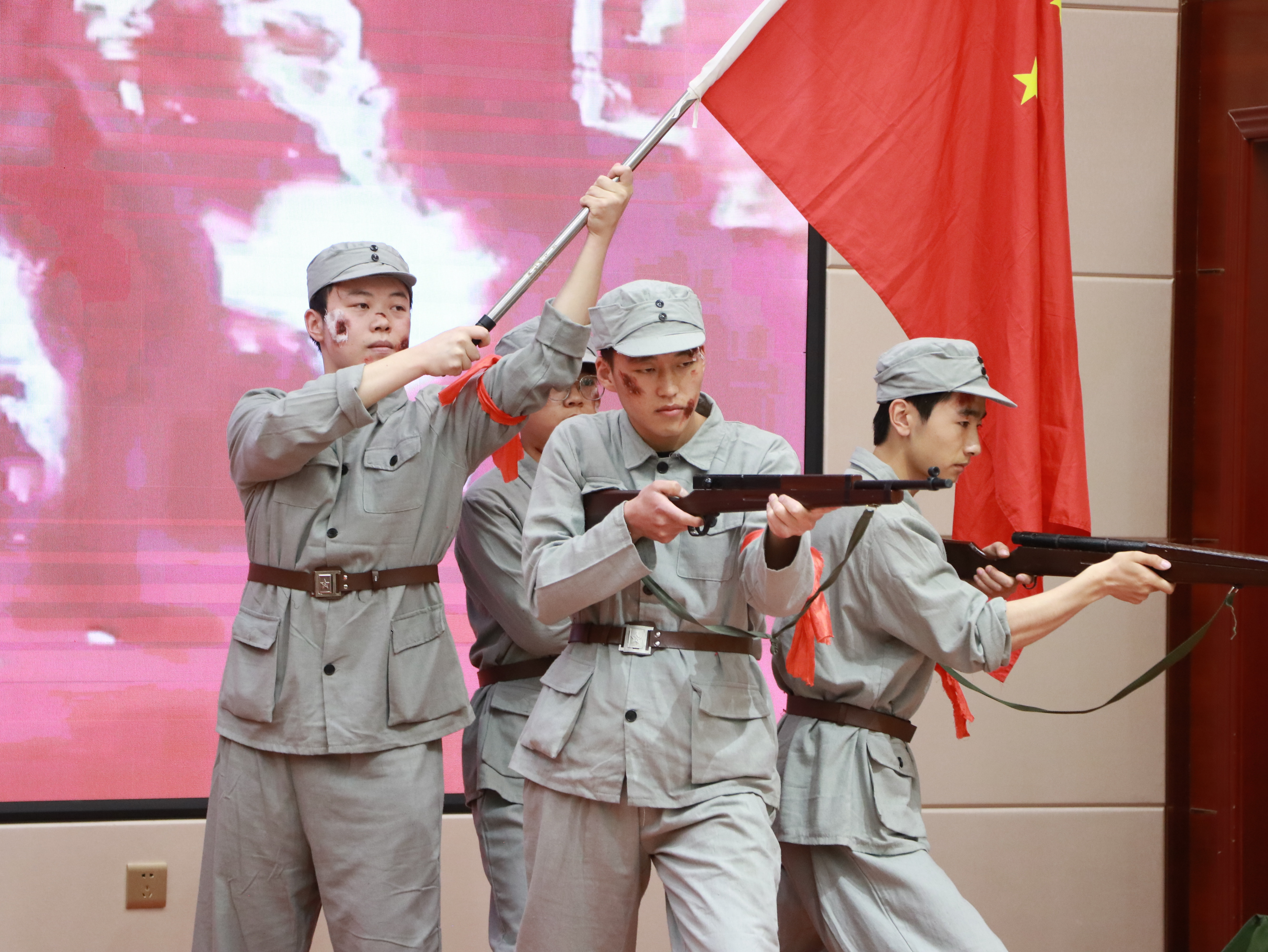 比賽現(xiàn)場,各參賽隊伍以“誦、演、歌、頌”的復(fù)合表達(dá),帶領(lǐng)觀眾穿越歷史烽煙,重現(xiàn)那段氣壯山河的抗戰(zhàn)歲月。他們或慷慨激昂地講述革命先輩寧死不屈的壯舉,或手持泛黃家書深情誦讀,絕筆信中的母愛與家國大義在顫抖的聲線中重現(xiàn);或化身硝煙中的戰(zhàn)士,用染血繃帶與折斷鋼槍演繹出“十萬青年十萬軍”的悲壯群像。那些被歲月蝕刻的墨跡,此刻正在當(dāng)代青年的瞳孔里重新燃燒。一句句飽含深情的誦讀,一幕幕震撼人心的演繹,都傳遞著同學(xué)們對抗戰(zhàn)英烈的深切緬懷與崇高敬意。現(xiàn)場掌聲如潮水般此起彼伏,經(jīng)久不息,激蕩著每一位觀眾的愛國情懷。