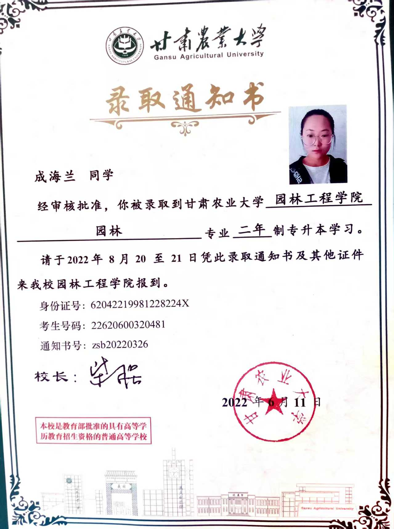 畢業(yè)感言:畢業(yè)幾年,母校的教誨始終銘記于心。感謝武威職業(yè)學院給予我的知識與力量,讓我在農(nóng)業(yè)領域能不斷前行,未來我也將繼續(xù)努力,為行業(yè)發(fā)展貢獻更多力量。