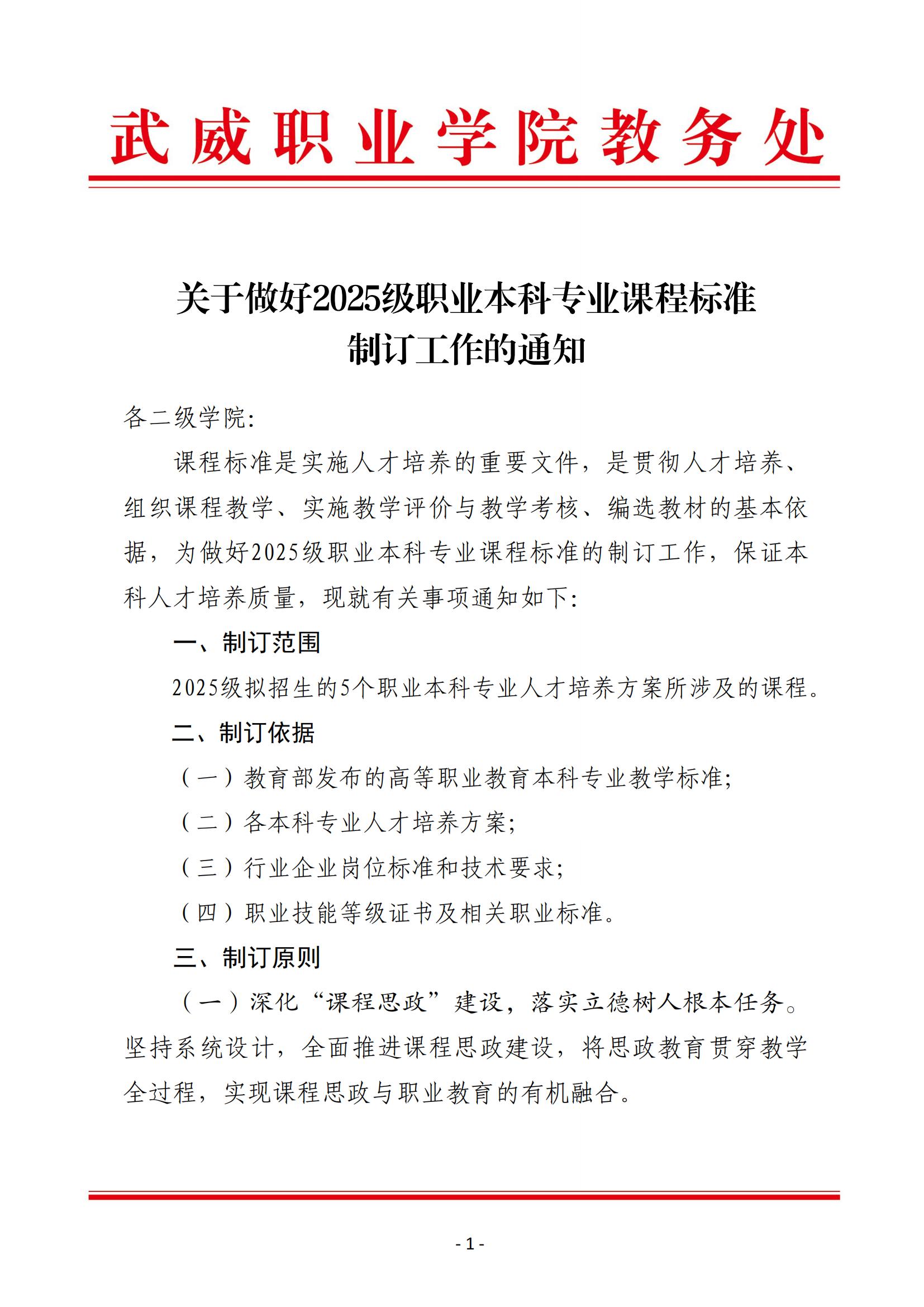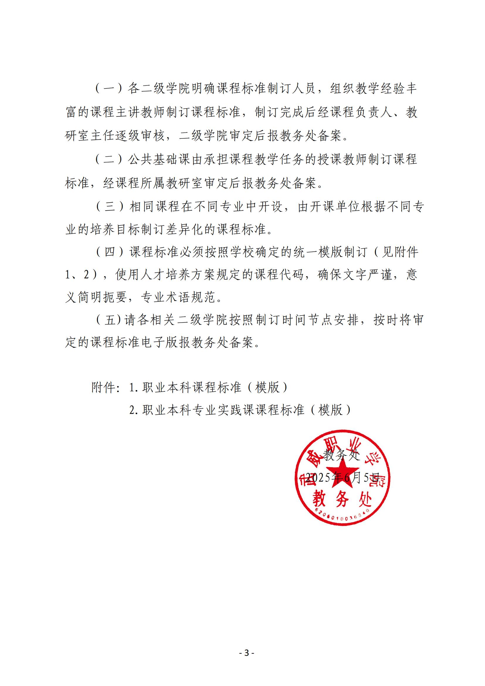 關(guān)于做好2025級(jí)職業(yè)本科專業(yè)課程標(biāo)準(zhǔn)制訂工作的通知