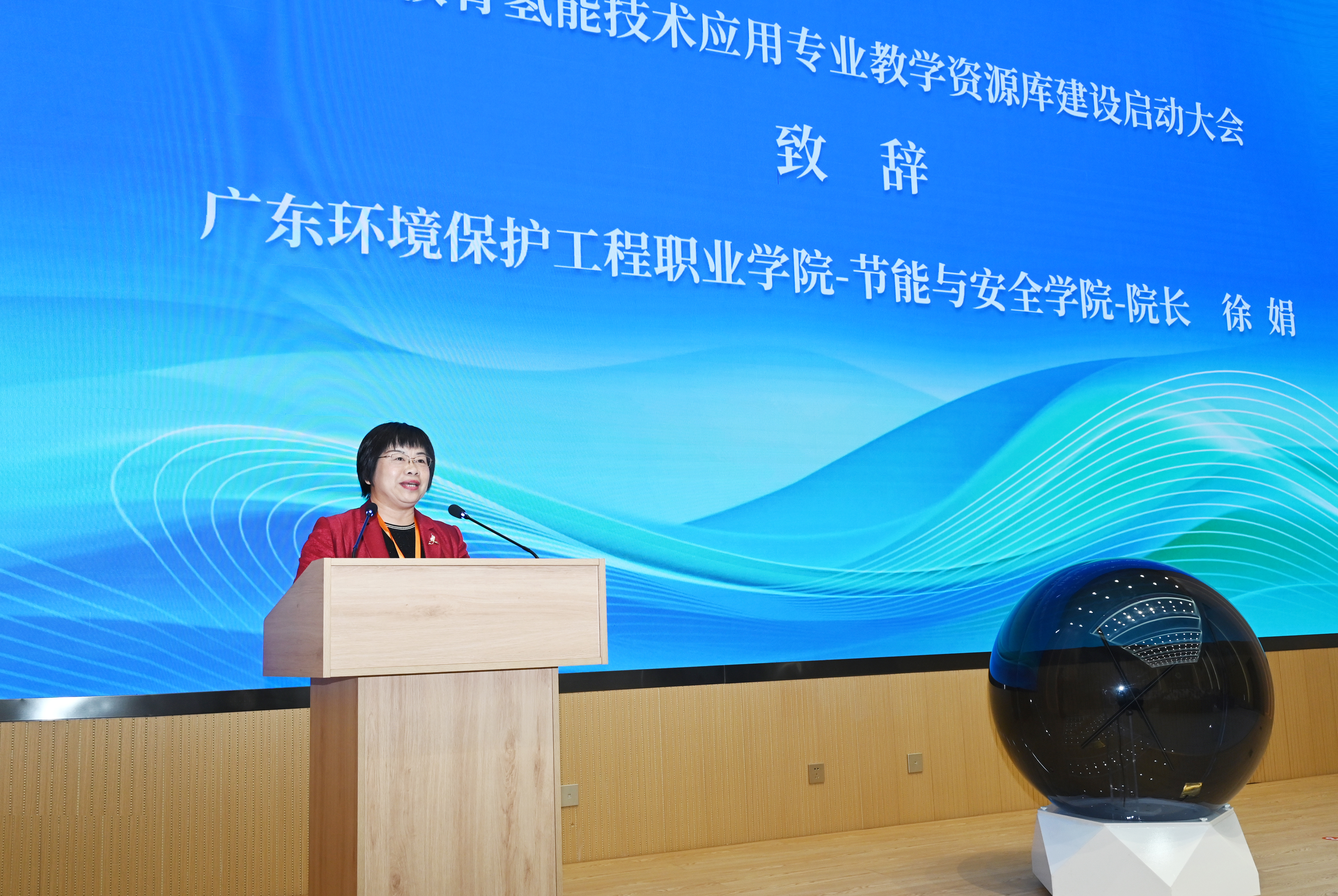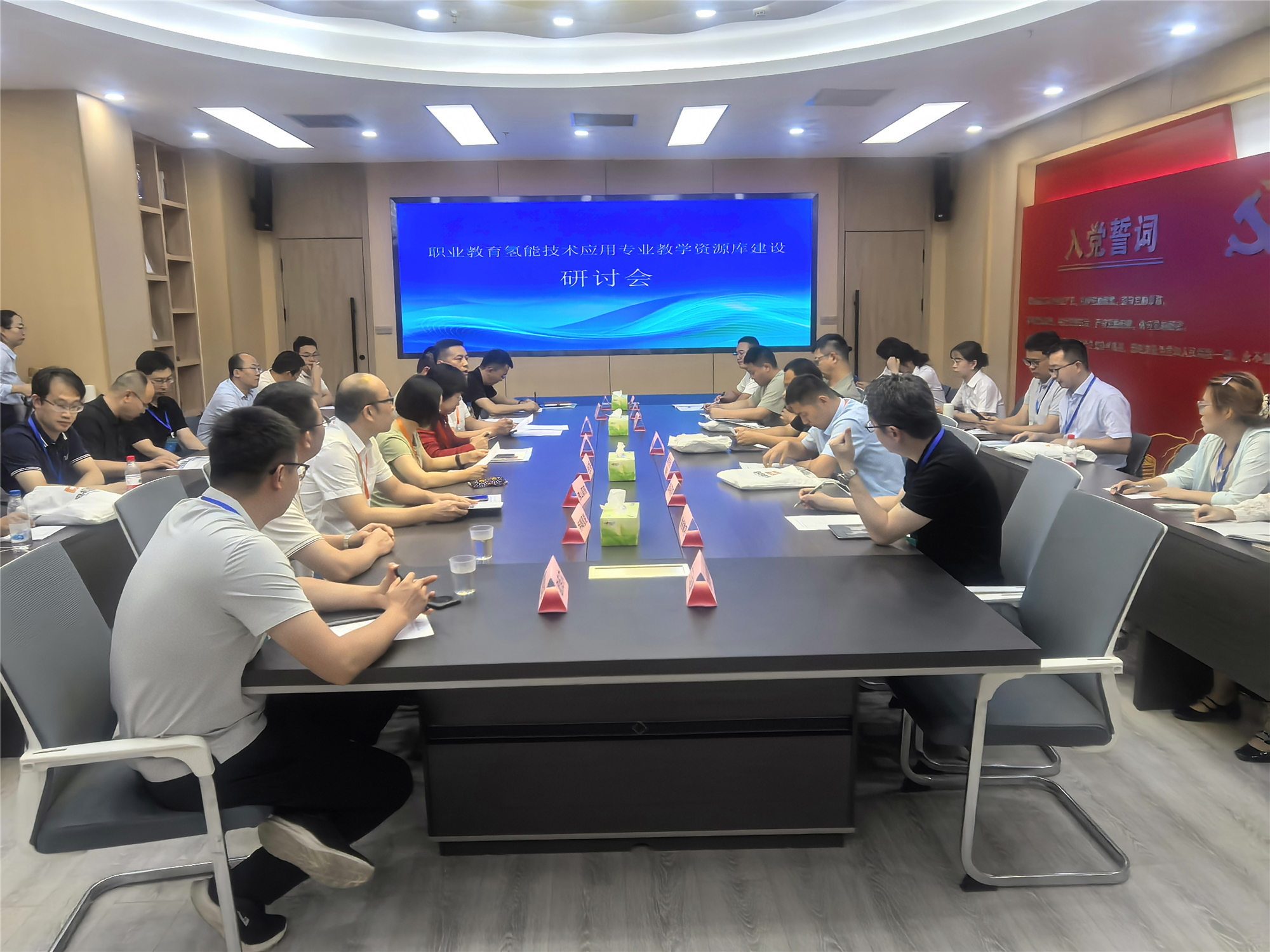 在參會領(lǐng)導(dǎo)和嘉賓的共同見證下,舉行了職業(yè)教育氫能技術(shù)應(yīng)用專業(yè)教學(xué)資源庫建設(shè)啟動儀式。隨著啟動球的點亮,標(biāo)志著資源庫建設(shè)正式啟動。