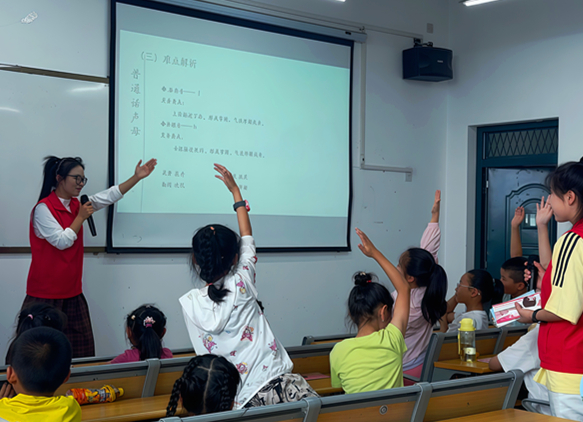 青春三下鄉(xiāng)∣童語同音 共筑未來——“聲潤?quán)l(xiāng)土”志愿服務(wù)團(tuán)開展社區(qū)兒童推普特色活動