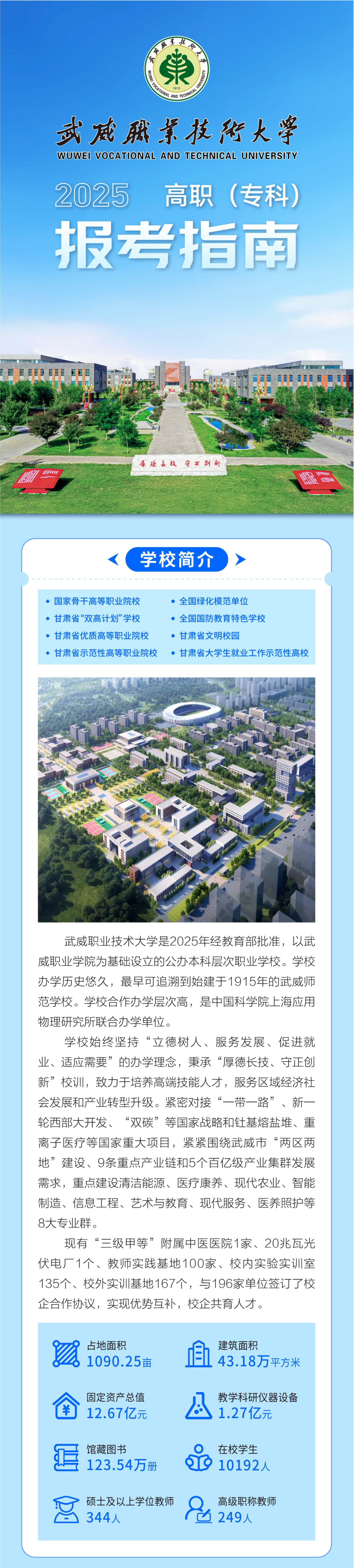 武威職業(yè)技術(shù)大學(xué)2025年高職(??疲﹫?bào)考指南