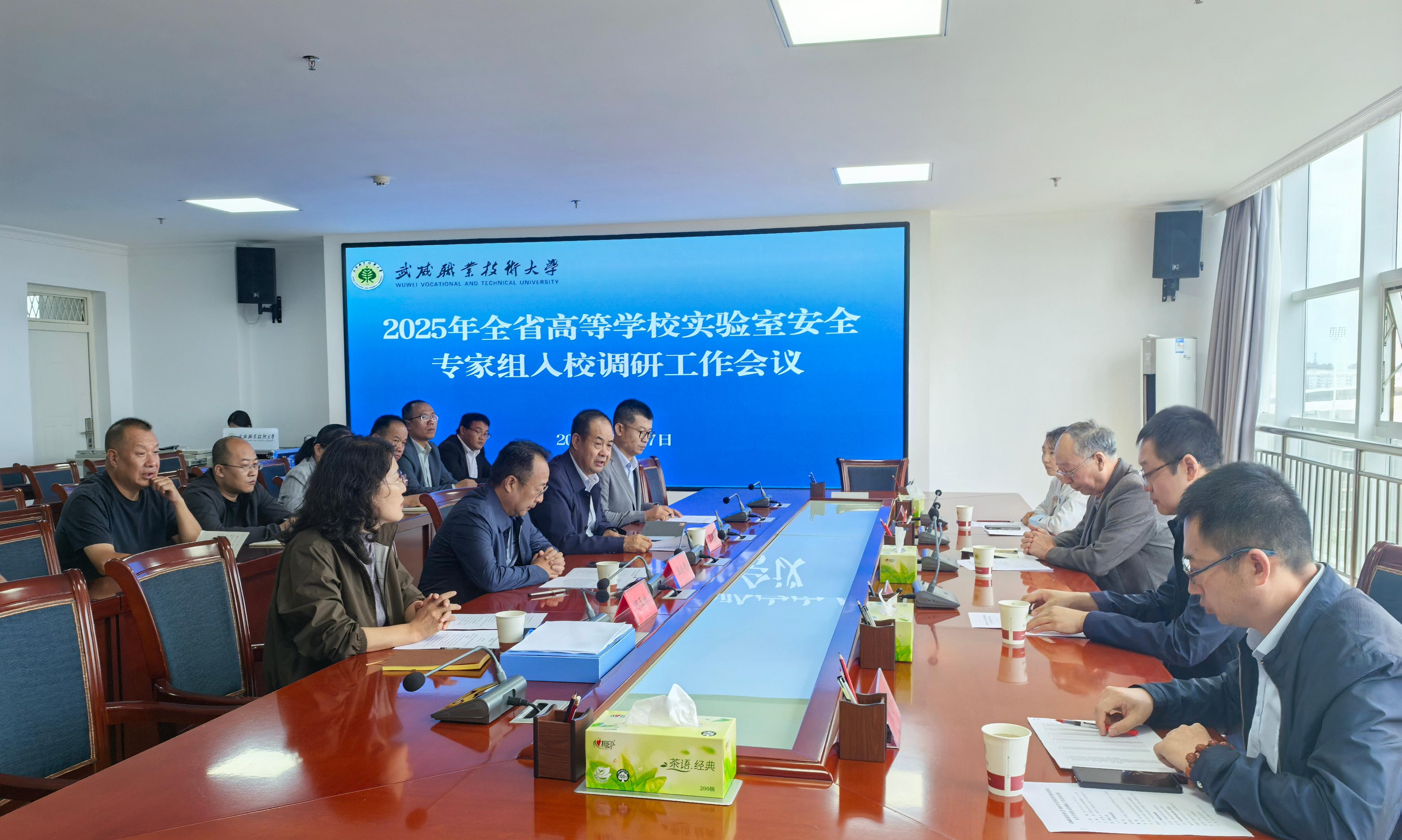 根據(jù)《甘肅省教育廳關于組織開展2025年高等學校實驗室安全工作的通知》要求和安排部署,8月27日,省教育廳高校實驗室安全調(diào)研專家組一行蒞臨學校開展實驗室安全工作調(diào)研。武威市教育局副局長王會民、學校黨委副書記翟存祥、相關部門及學院(部)負責人參加會議。