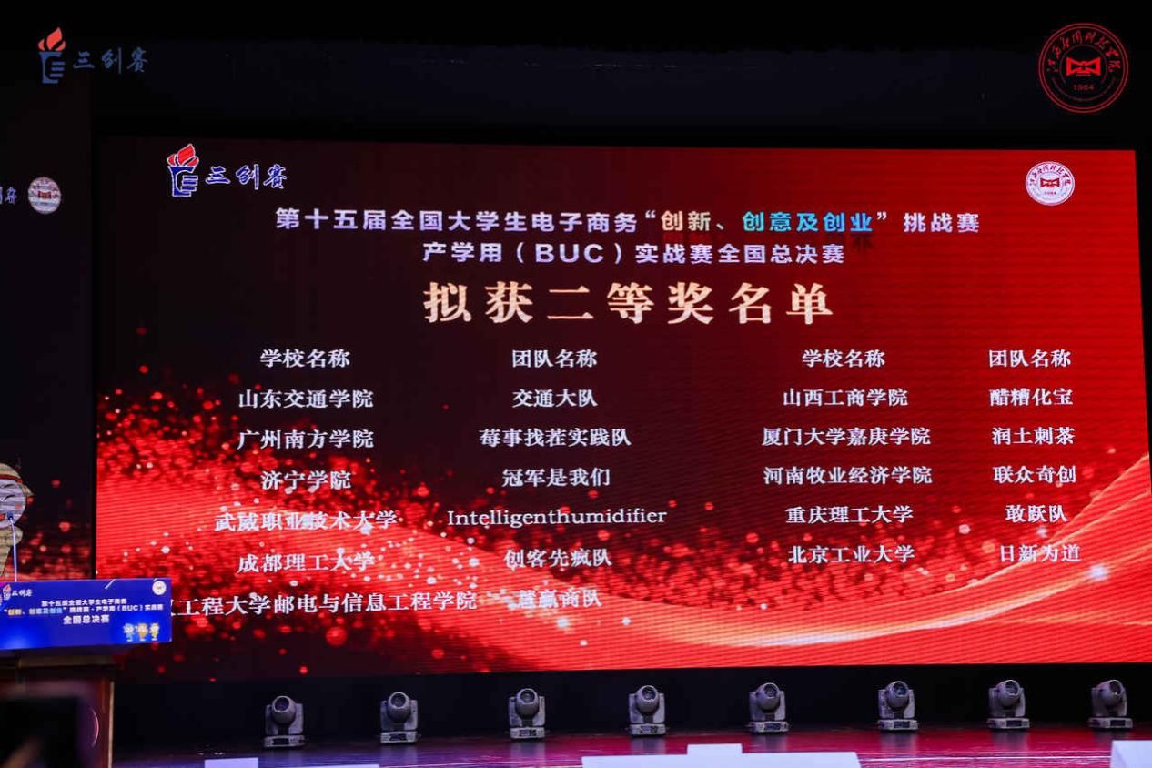 自2024年9月賽事啟動(dòng)以來,經(jīng)過校賽、省賽層層選拔,最終學(xué)校4支團(tuán)隊(duì)成功晉級(jí)全國(guó)總決賽,在直播電商、鄉(xiāng)村振興、產(chǎn)學(xué)用(BUC)三大實(shí)戰(zhàn)賽項(xiàng)中與全國(guó)優(yōu)秀參賽團(tuán)隊(duì)同臺(tái)競(jìng)技,最終“涼韻臻品”團(tuán)隊(duì)獲得直播電商實(shí)戰(zhàn)賽全國(guó)一等獎(jiǎng);“甜瓜勁旅”團(tuán)隊(duì)獲得鄉(xiāng)村振興實(shí)戰(zhàn)賽全國(guó)二等獎(jiǎng);“沖鋒小隊(duì)”團(tuán)隊(duì)和“intelligenthumidifier”團(tuán)隊(duì)雙雙獲得產(chǎn)學(xué)用(BUC)實(shí)戰(zhàn)賽全國(guó)二等獎(jiǎng)。