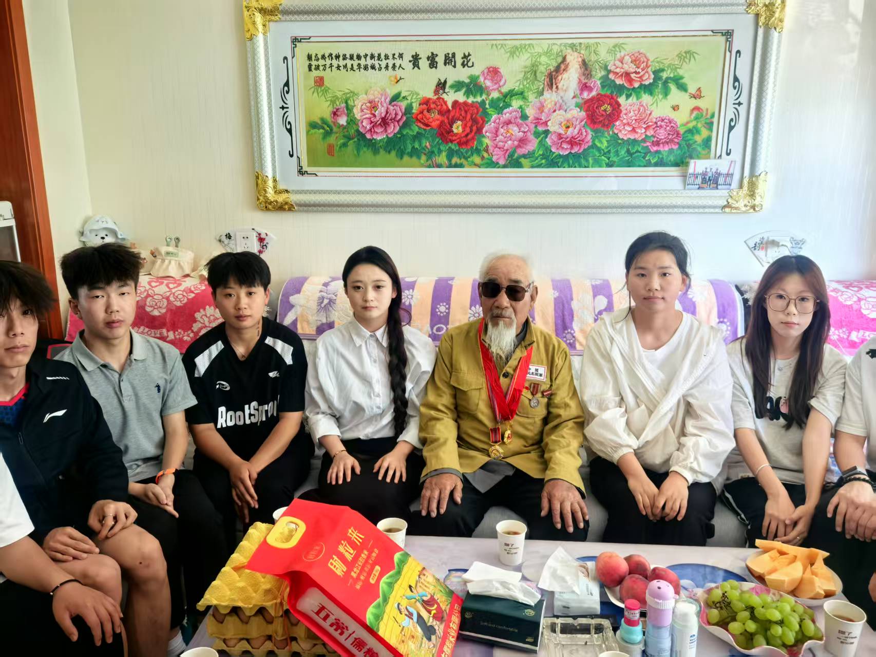 現(xiàn)居住于康寧新村八組、已93歲高齡的張克錄爺爺是參加過抗美援朝的退役老英雄。9月25日,堅(jiān)持駐村4年的靳東生老師與學(xué)?!八{(lán)天愛心協(xié)會(huì)”指導(dǎo)教師、青年大學(xué)生,帶著學(xué)校的牽掛、問候與崇敬,一起到張克錄爺爺家中,為老人送上關(guān)愛祝福,開展了一場(chǎng)“聆聽英雄故事、傳承紅色基因”的特別走訪、慰問活動(dòng)。張克錄爺爺精神矍鑠,身著掛有勛章的志愿軍軍裝,向師生們講述當(dāng)年志愿軍戰(zhàn)士冒著凜冽寒風(fēng)跨過鴨綠江,爬冰臥雪英勇戰(zhàn)斗的生動(dòng)事跡;驚心動(dòng)魄的戰(zhàn)斗故事,在老人樸實(shí)無華的語言中顯得格外感人,在場(chǎng)師生仿佛穿越時(shí)空,親眼目睹了志愿軍戰(zhàn)士們用血肉之軀筑起的鋼鐵長(zhǎng)城;說到動(dòng)情處,老人和師生們的眼眶已經(jīng)濕潤(rùn),師生心靈受到了深刻洗禮、愛國(guó)情懷得到了高度升華。