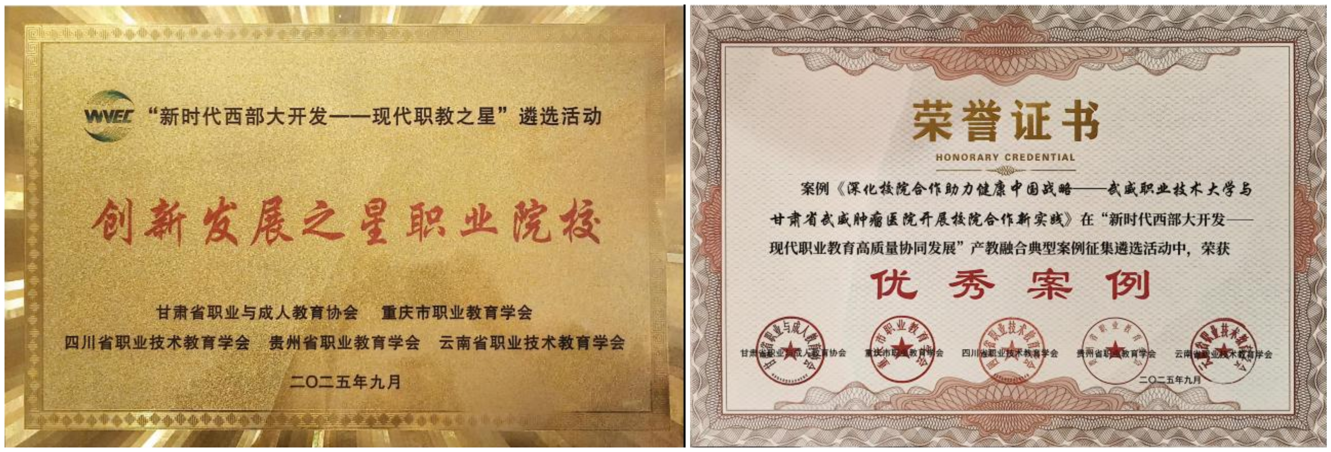近日,從“新時(shí)代西部大開發(fā)——現(xiàn)代職業(yè)教育高質(zhì)量協(xié)同發(fā)展(蘭州)大會(huì)”上傳來喜訊,武威職業(yè)技術(shù)大學(xué)在甘肅省職業(yè)與成人教育協(xié)會(huì)組織的“新時(shí)代西部大開發(fā)——現(xiàn)代職教之星”和“新時(shí)代西部大開發(fā)——產(chǎn)教融合典型案例”征集遴選活動(dòng)中榮獲兩項(xiàng)重要榮譽(yù)。學(xué)校獲評(píng)“創(chuàng)新發(fā)展之星職業(yè)院?!?,《深化校院合作助力健康中國戰(zhàn)略——武威職業(yè)技術(shù)大學(xué)與甘肅省武威腫瘤醫(yī)院開展校院合作新實(shí)踐》榮獲“產(chǎn)教融合典型案例優(yōu)秀案例”。
