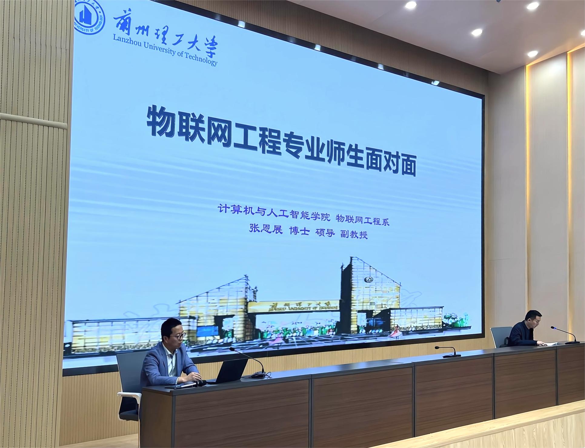 為幫助學(xué)生深入了解物聯(lián)網(wǎng)行業(yè)的發(fā)展趨勢、關(guān)鍵技術(shù)及職業(yè)前景。9月26日下午,信息技術(shù)學(xué)院特邀蘭州理工大學(xué)計算機與人工智能學(xué)院物聯(lián)網(wǎng)工程系主任、副教授、碩士生導(dǎo)師張恩展博士擔(dān)任主講嘉賓,為首屆物聯(lián)網(wǎng)專業(yè)本科生和物聯(lián)網(wǎng)專業(yè)老師帶來了一場內(nèi)容翔實、視野開闊的學(xué)術(shù)報告。信息技術(shù)學(xué)院2025級全體物聯(lián)網(wǎng)工程技術(shù)專業(yè)本科生及教師代表100多人參加了報告會,報告會由學(xué)院黨總支書記史子新主持。
