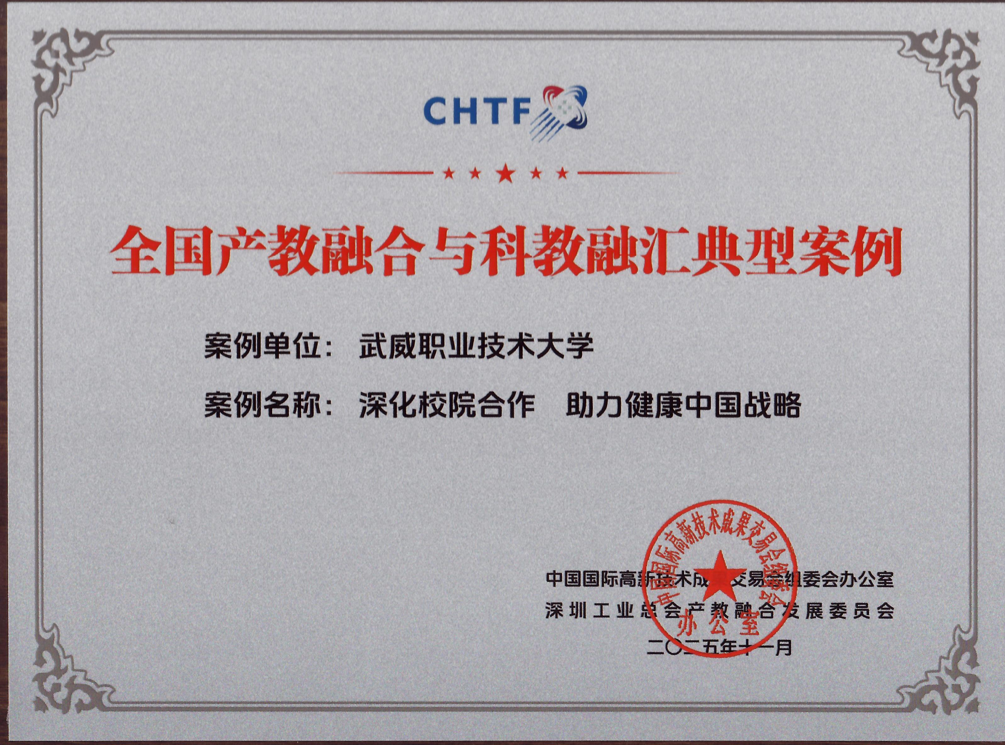 近日,第二十七屆中國(guó)國(guó)際高新技術(shù)成果交易會(huì)組委會(huì)公布產(chǎn)教融合與科教融匯典型案例評(píng)選結(jié)果,我校報(bào)送的《深化校院合作 助力健康中國(guó)戰(zhàn)略——武威職業(yè)技術(shù)大學(xué)與甘肅省武威腫瘤醫(yī)院開(kāi)展校院合作新實(shí)踐》成功入選《全國(guó)產(chǎn)教融合與科教融匯典型案例匯編》,標(biāo)志著我校在實(shí)施科教融匯行動(dòng),推動(dòng)健康人才培養(yǎng)實(shí)踐獲得國(guó)家級(jí)平臺(tái)認(rèn)可。