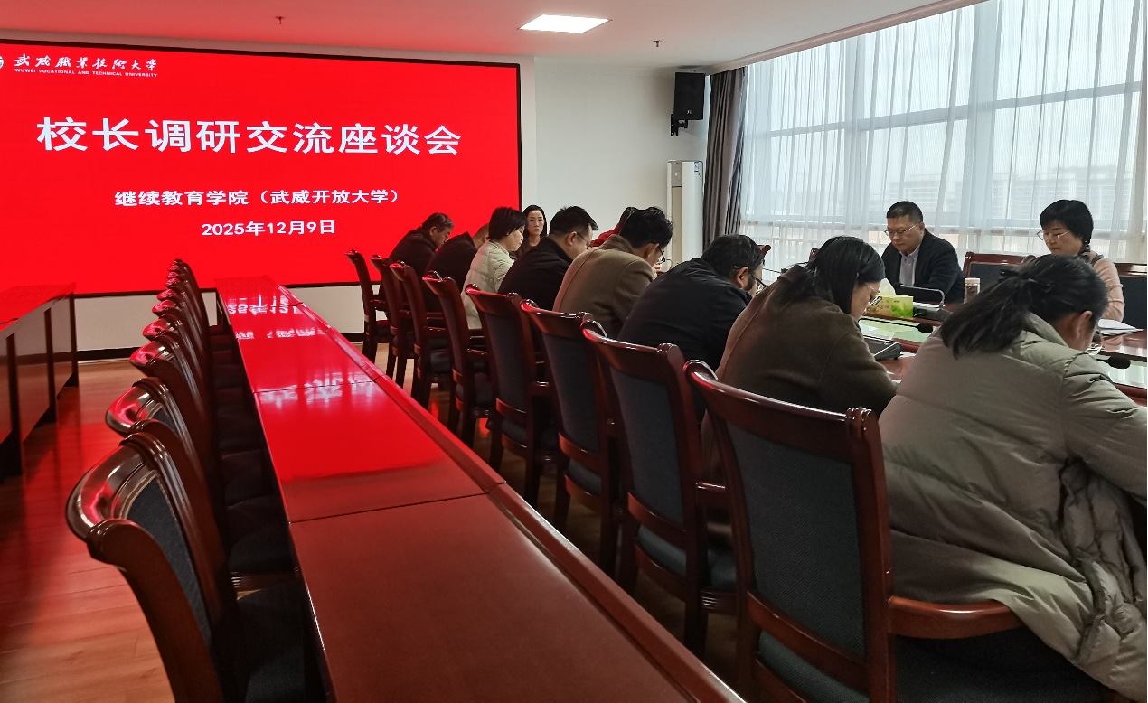 12月9日,校長(zhǎng)李海軍深入繼續(xù)教育學(xué)院(武威開(kāi)放大學(xué))開(kāi)展調(diào)研指導(dǎo)工作。此次調(diào)研聚焦學(xué)院招生管理、教學(xué)運(yùn)行、社會(huì)培訓(xùn)、社區(qū)教育等核心議題,旨在通過(guò)深度交流凝聚共識(shí),為提升辦學(xué)質(zhì)量與服務(wù)水平注入新動(dòng)能。黨委委員、副校長(zhǎng)何毅,繼續(xù)教育學(xué)院領(lǐng)導(dǎo)班子及全體教師參與調(diào)研。