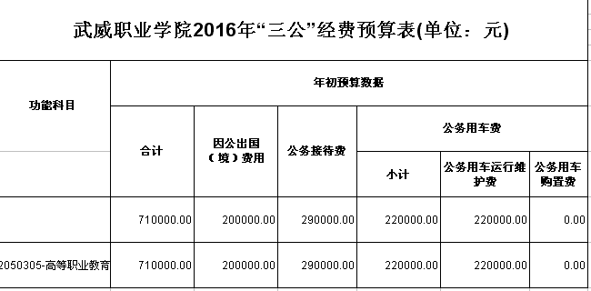 武威職業(yè)學(xué)院2016年部門(mén)預(yù)算和“三公”經(jīng)費(fèi)預(yù)算公開(kāi)