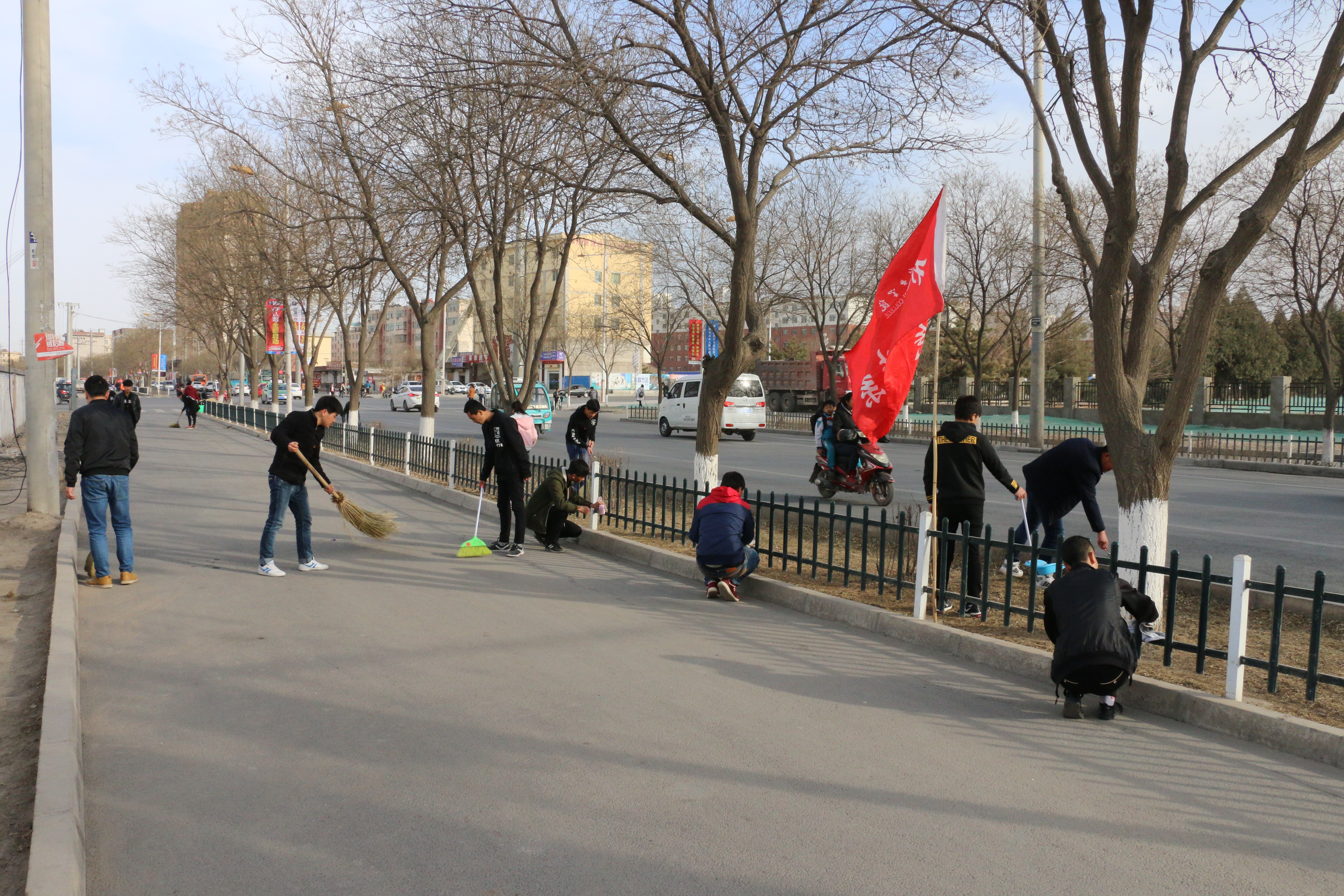 3月3日下午,現(xiàn)代農(nóng)業(yè)技術(shù)系50名志愿者在武威市文化廣場參加了全市志愿者集中服務(wù)日活動(dòng);學(xué)院327名青年志愿者清掃了周邊街道衛(wèi)生,集中清潔道路兩邊的柵欄、公交車站,清除小廣告,凈化了城市衛(wèi)生和生活環(huán)境。