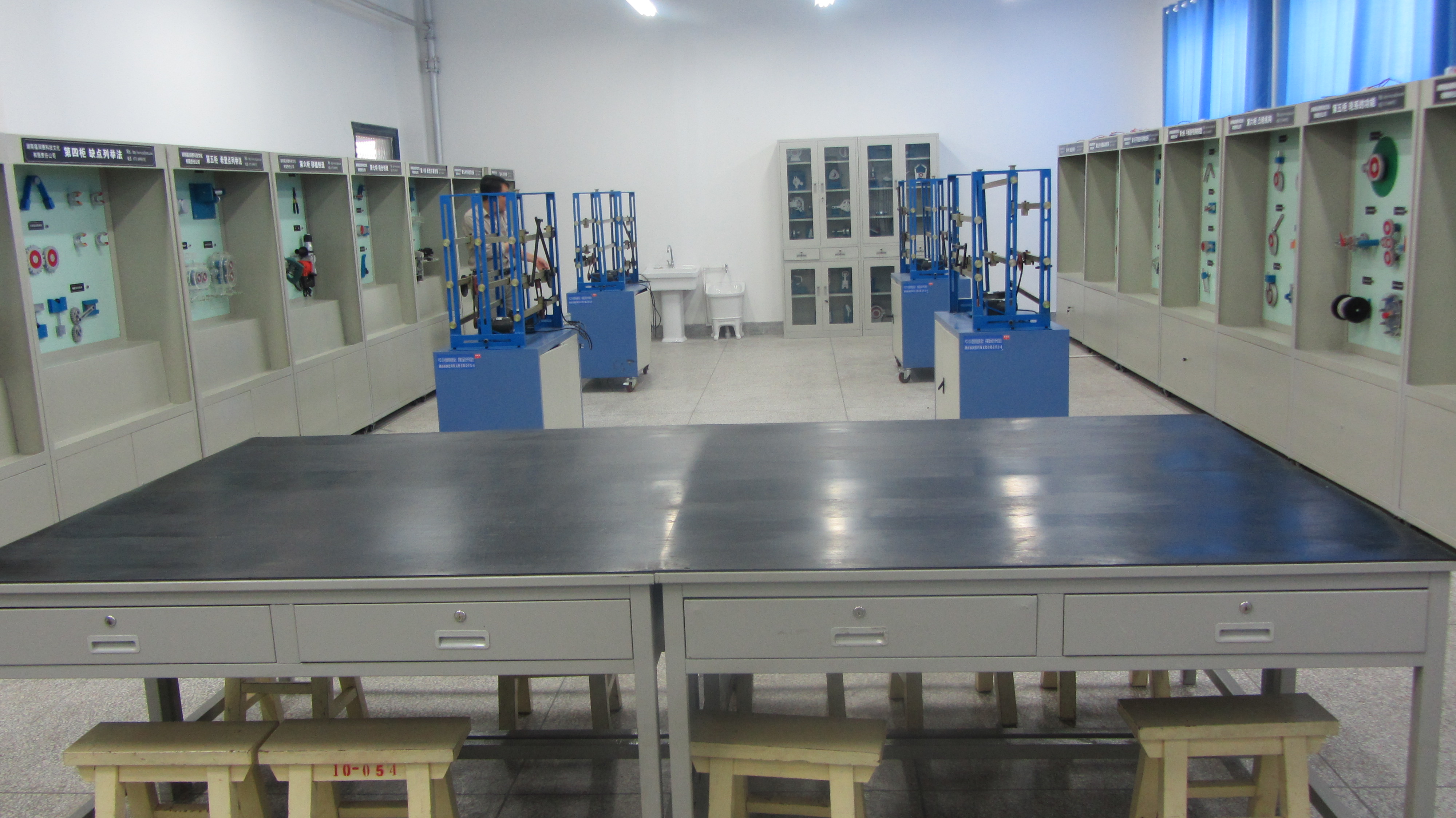 本實(shí)驗(yàn)室主要由10組成套“機(jī)械原理” 陳列柜、10組成套“機(jī)械創(chuàng)新設(shè)計(jì)”陳列柜、4臺(tái)平面機(jī)構(gòu)創(chuàng)意組合實(shí)驗(yàn)臺(tái)和35套機(jī)構(gòu)運(yùn)動(dòng)簡(jiǎn)圖測(cè)繪模型組成。設(shè)備造價(jià)近20多萬(wàn)元,實(shí)驗(yàn)室能完成機(jī)械類(lèi)及近機(jī)械類(lèi)專(zhuān)業(yè)本、專(zhuān)科學(xué)生《機(jī)械設(shè)計(jì)基礎(chǔ)》、《機(jī)械原理》、《機(jī)械設(shè)計(jì)》課程16個(gè)實(shí)驗(yàn)項(xiàng)目。