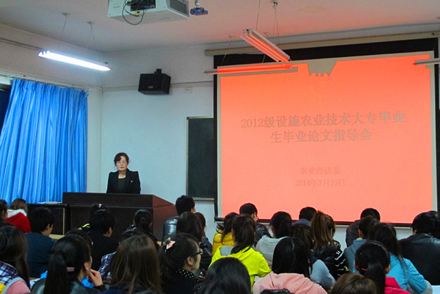 根據(jù)設(shè)施農(nóng)業(yè)技術(shù)專(zhuān)業(yè)人才培養(yǎng)方案要求,結(jié)合國(guó)家骨干校項(xiàng)目建設(shè)任務(wù),為了提高2014屆設(shè)施農(nóng)業(yè)技術(shù)專(zhuān)業(yè)畢業(yè)生畢業(yè)論文(設(shè)計(jì))質(zhì)量,農(nóng)業(yè)經(jīng)濟(jì)系于3月16日晚召開(kāi)了“2014屆大專(zhuān)畢業(yè)生畢業(yè)論文指導(dǎo)會(huì)”。全系教師及2012級(jí)設(shè)施農(nóng)業(yè)技術(shù)大專(zhuān)(1)、(2)班81名同學(xué)參加了本次會(huì)議。